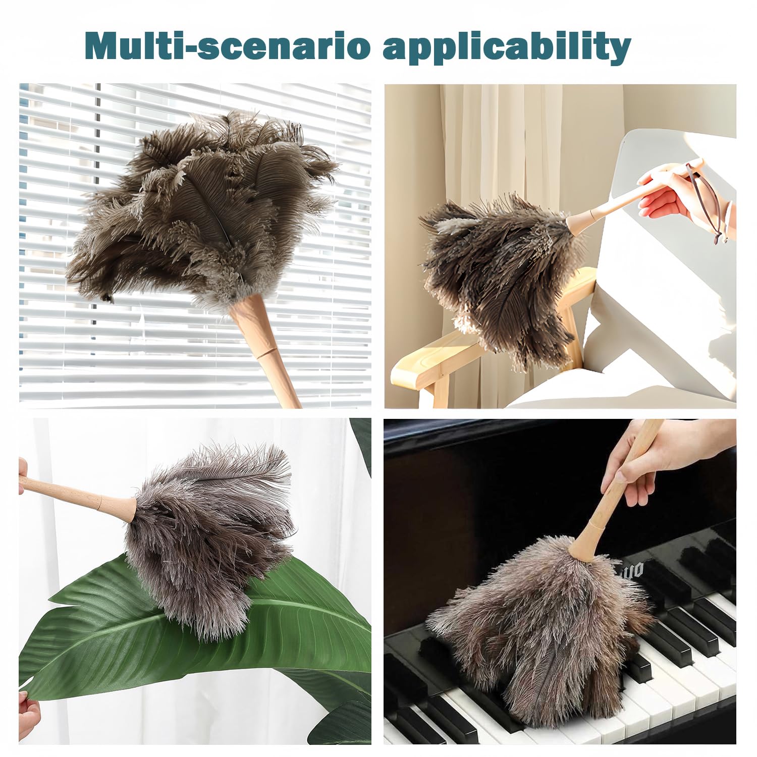 - Original Feather Dusters – Ostrich Feather Duster,Feather Duster Fluffy Natural Genuine Ostrich Feathers with Wooden Handle and Eco-Friendly Reusable Handheld Ostrich Feather Duster Cleaning Supplies, Gray and Brown(Length 16) by Ddzmz