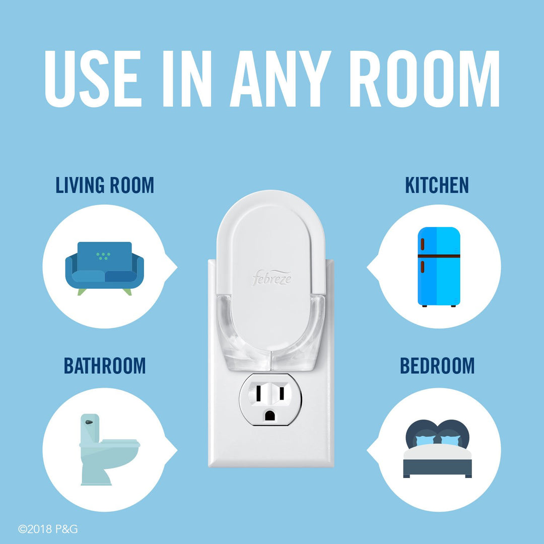 - Just plug this air freshener into any outlet to begin cleaning your air of odors in breakrooms, kitchens, bathrooms, and more.