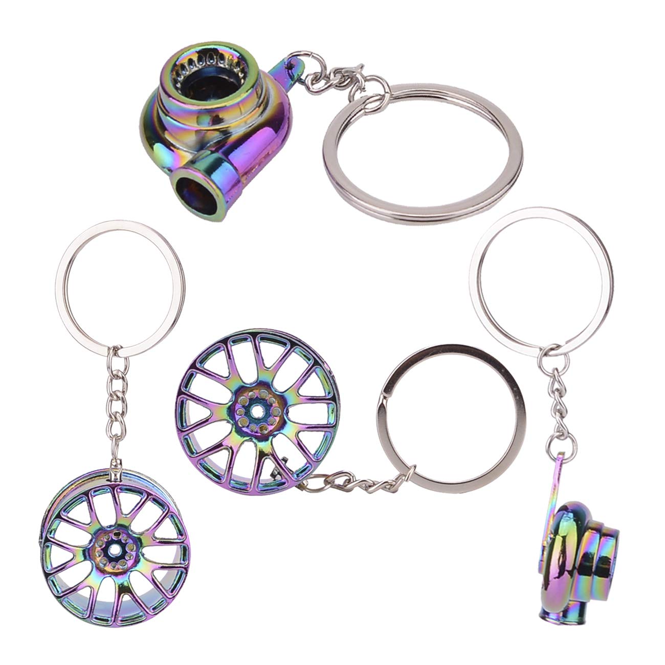 - Package1 Pcs Turbo Keychain, 1 Pcs Manual Gearbox Keychain, 1 Pcs Tire Rim Keychain, 1 Pcs Brake Rotor Keychain, 1 Pcs Spring Shock-absorber Keychain.