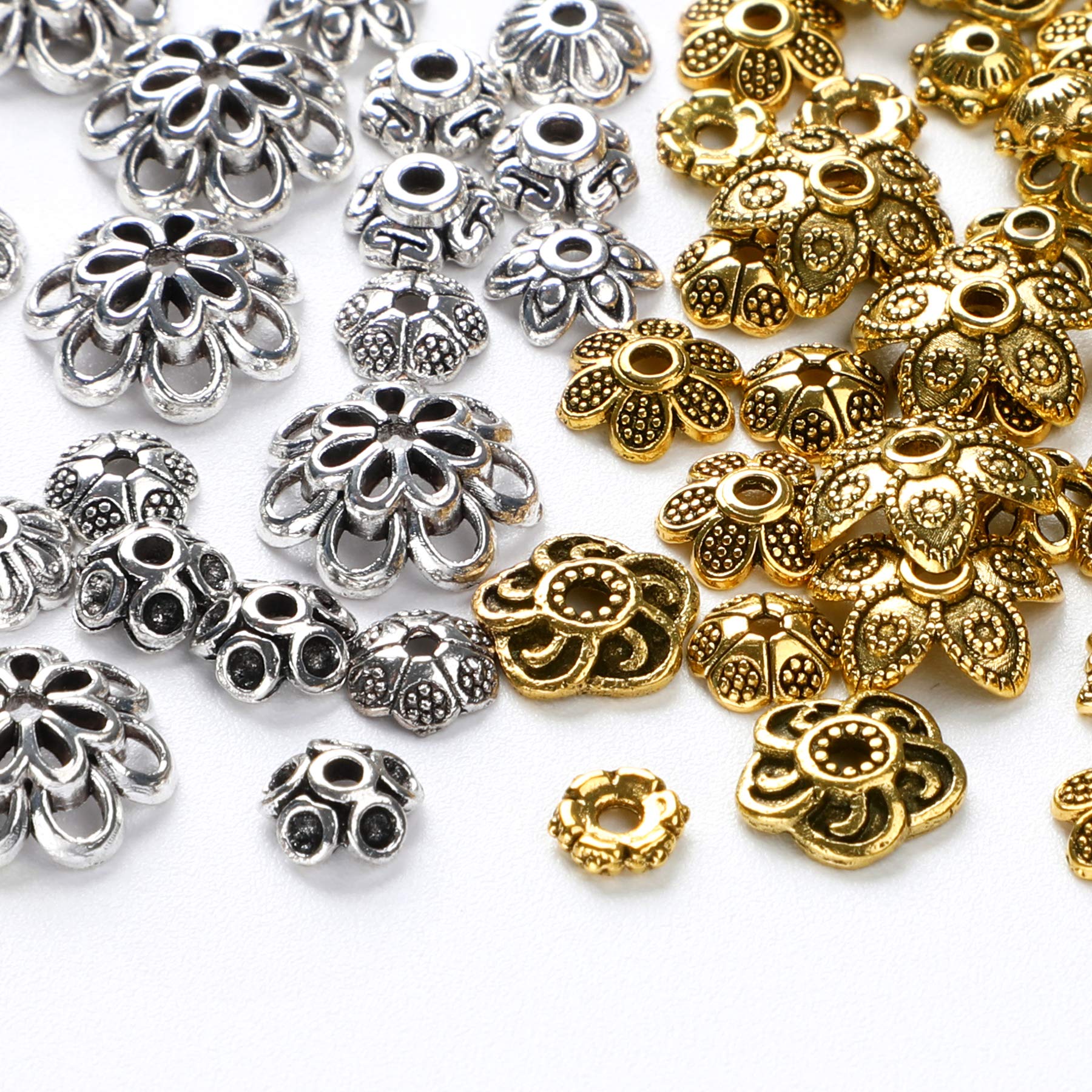 - Package Includes: About 160pcs spacer alloy bead caps in antique gold and tibetan silver color. Exquisite spacer beads can create retro and bali styles for your jewelry making.