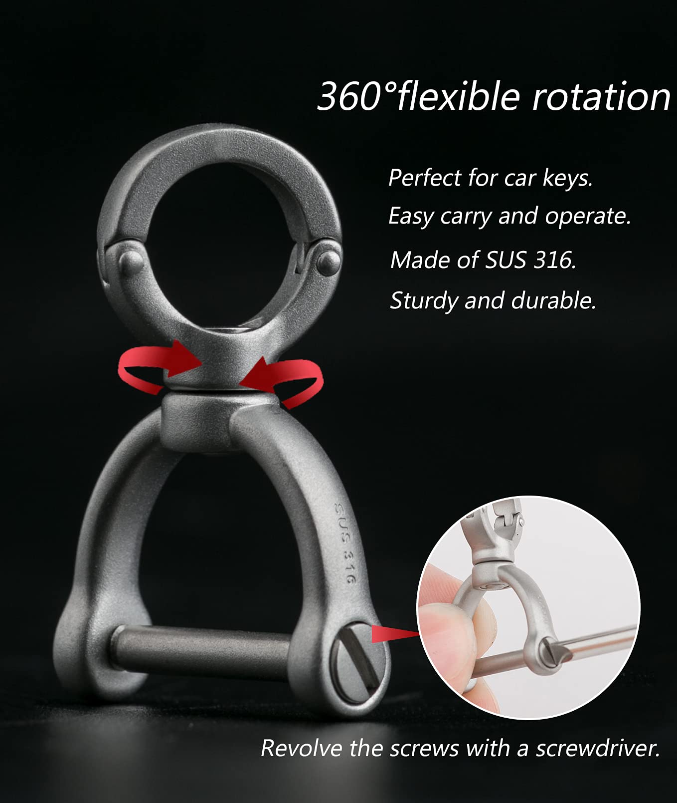 - Packaging and after-sales service: You will receive 1x titanium Circle Carabiner Keychain, 1x stainless steel 360°Swivel D-ring,1x screwdriver