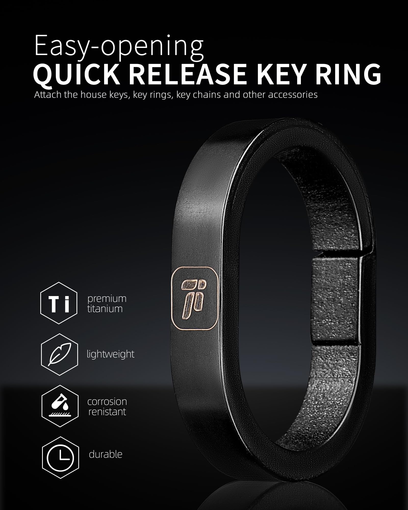 - TC4 Titanium Alloy: Excellent wear and corrosion resistant, ultra light but durable. Flat key ring is made of stainless steel