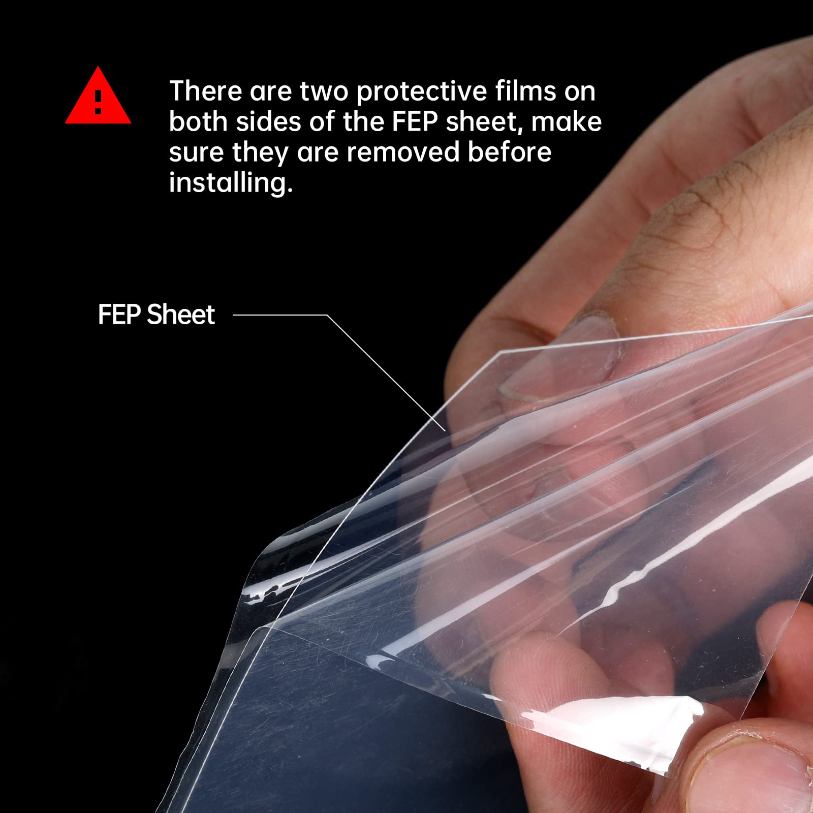 - Attention – There are two protective films on both sides of the FEP sheet, make sure they are removed before installing.