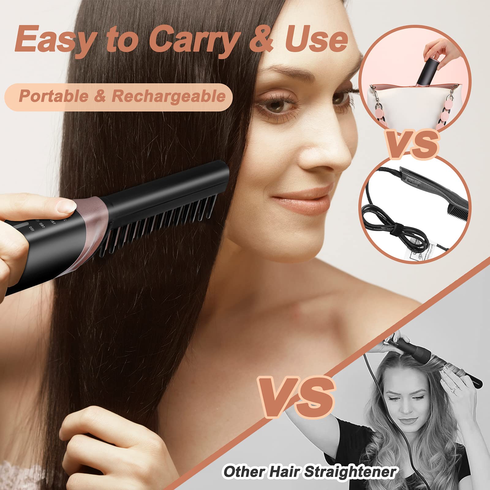 - Original Hot-Air Brushes – Cordless Hair Straightener Brush, Rechargeable Portable Heated Comb Mini Straightening Brush for Women and Mens Beard Home Travel Lightweight Carry-Along Hot Comb by FERNIDA