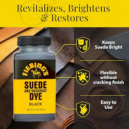 - Original Shoe Care & Accessories – Fiebing's Black Suede Dye (4 oz) - Recolor, Brighten & Restore Suede & Roughout Leather Shoes, Furniture, Purse - Includes Wool Dauber for Easy Application - Flexible When Dry, Won't Crack or Peel by Fiebing's
