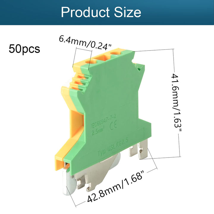- Original Ground Circuit Terminal Blocks – 25Pcs USLKG2.5 0.2-4mm2 DIN Rail Mount Grounding Terminal Block DIN Rail Terminal Blocks Screw Clamp Connector, 800V 34A, Yellow-Green by Fielect