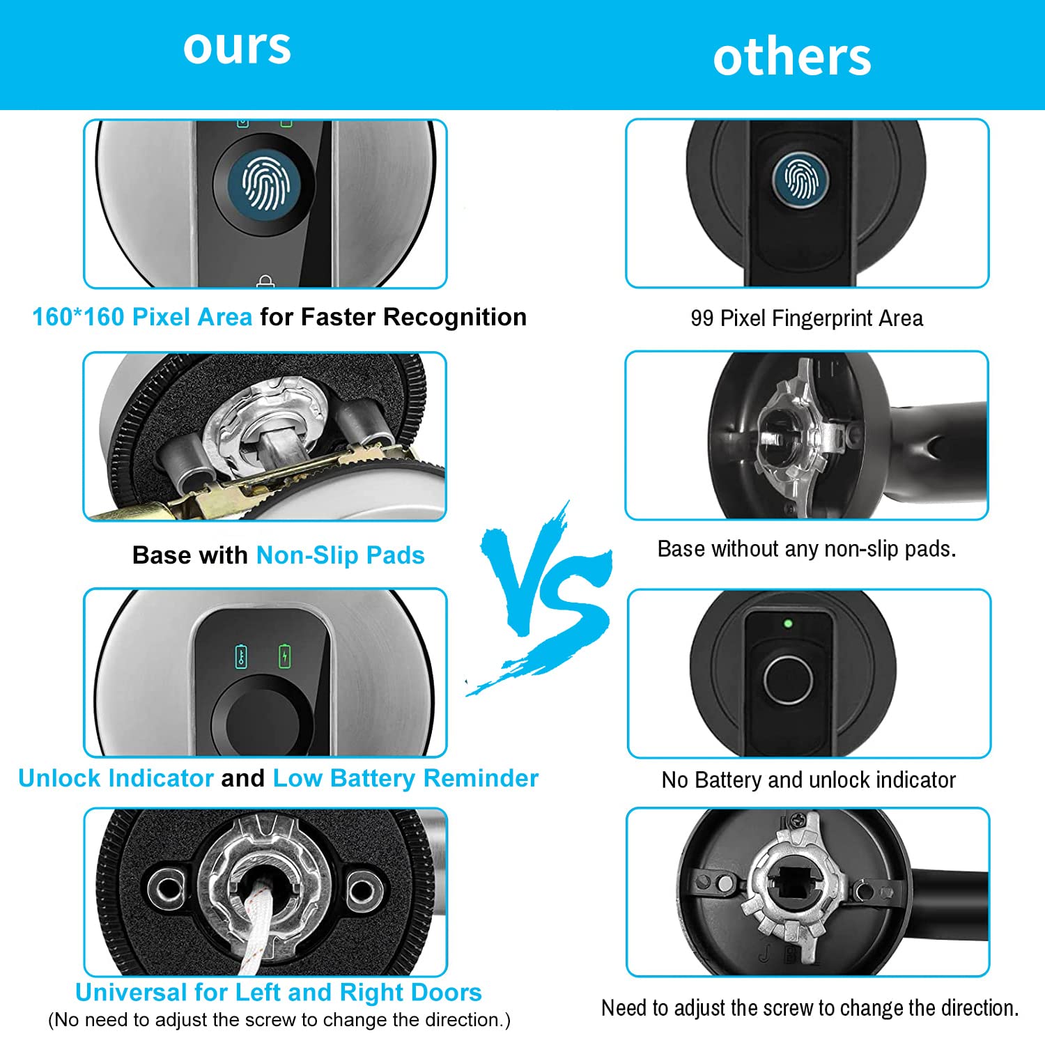 - Amazing Fingerprint ReaderBAFUWEIY fingerprint door lock is equipped with a larger 160*160 fingerprint sensor with 35% more area than 120*120. 508 DPI fingerprint reader will be more sensitive when you use it, and the recognition is more accurate and stable;