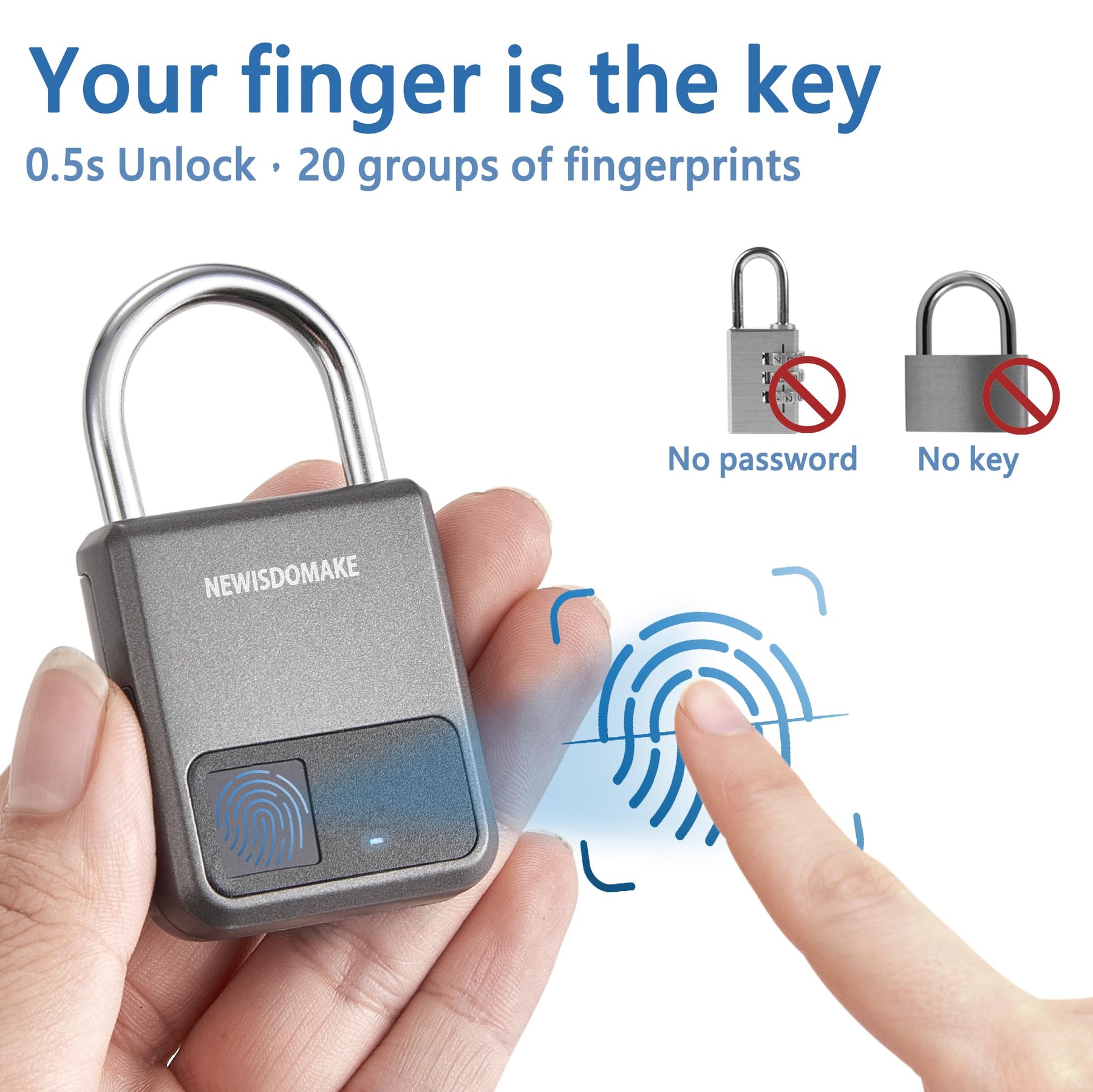 - Original Combination Padlocks – Fingerprint Padlock, Smart Padlock with USB Charging Support, Fingerprint Lock, Biometric Lock Suitable for Luggage, Bookcase, Suitcase, Backpack, Bike, School Locker, Gym Locker Lock(Gray) by Newisdomake