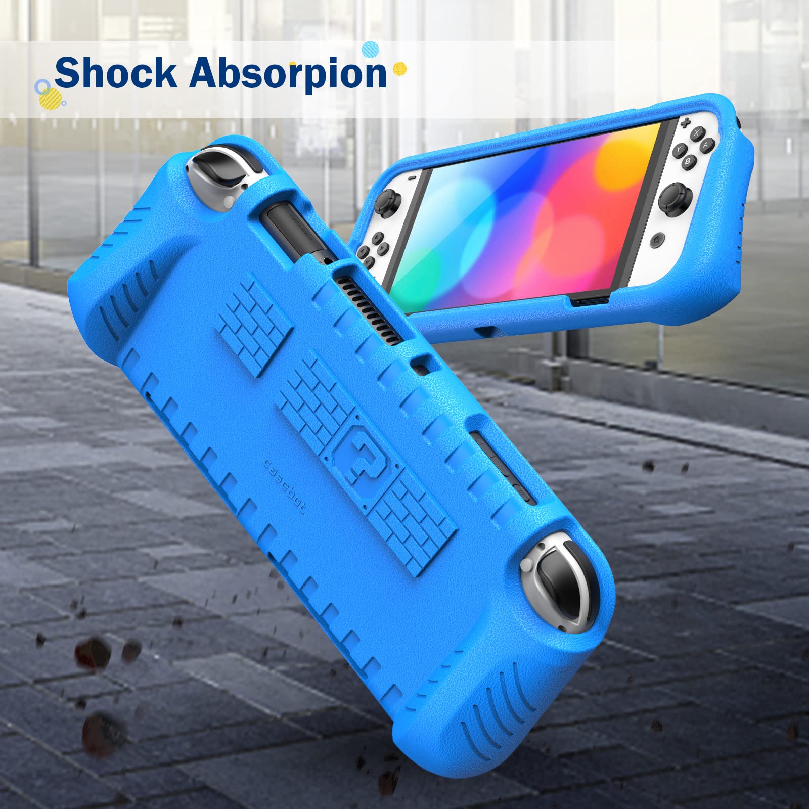 - Original Cases – Kids Case for Nintendo Switch OLED Model 2021 with 2 Game Card Slots - [Kids Friendly] Ultralight Shockproof Protective Cover, Ergonomic Grip Case for Switch OLED Model Console 7.0 (Blue) by Fintie