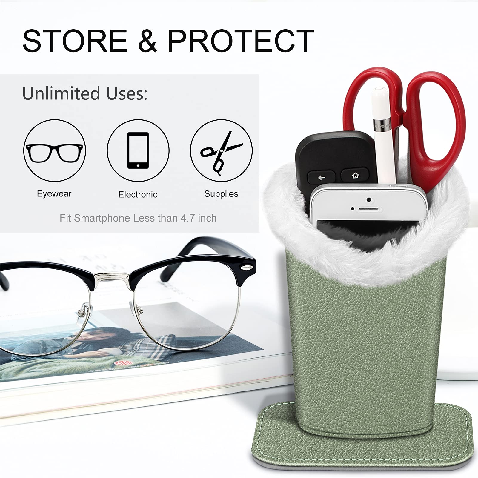 - Original Eyeglass Cases – Plush Lined Eyeglasses Holder with Magnetic Base- Premium Vegan Leather Glasses Stand Case, Sage Green by Fintie