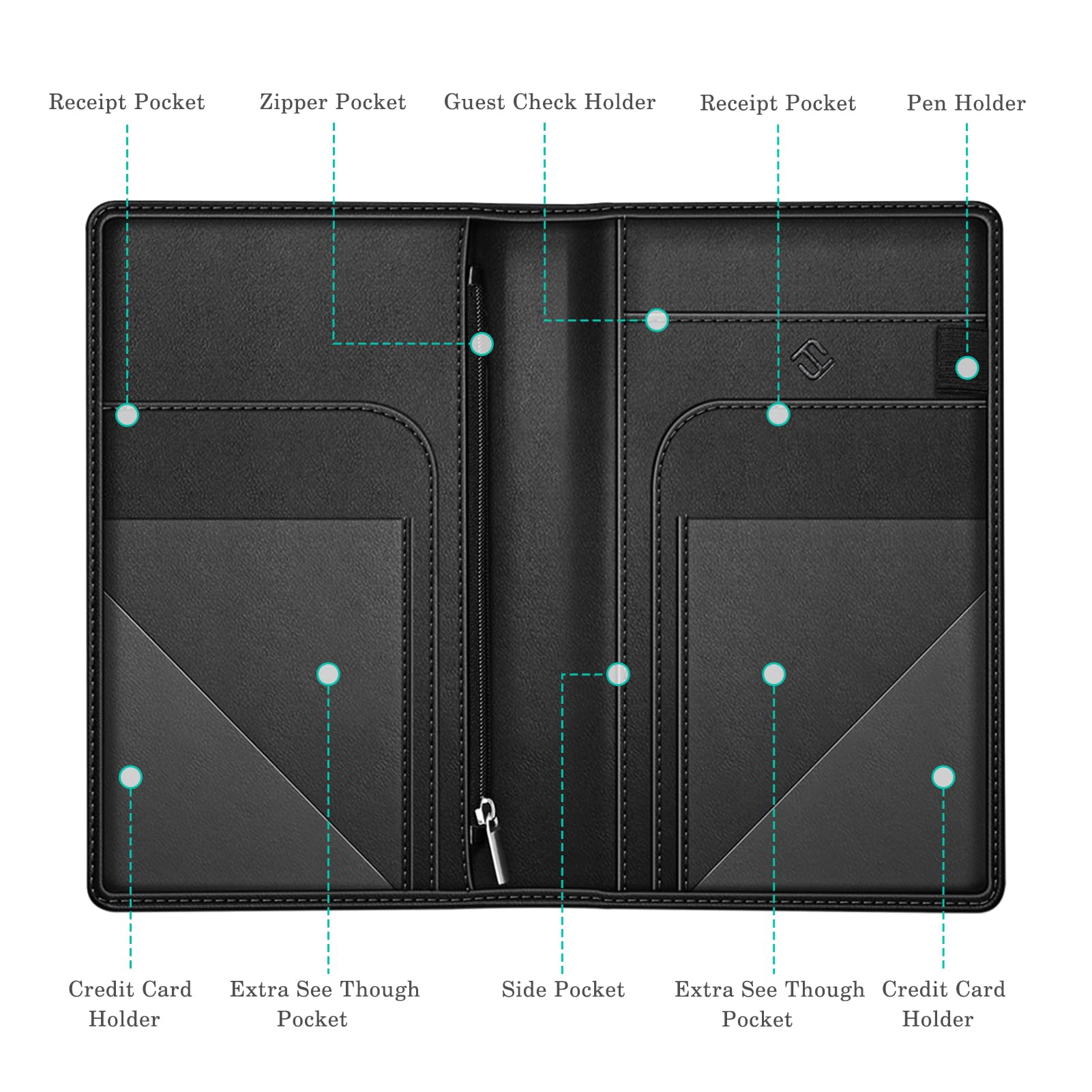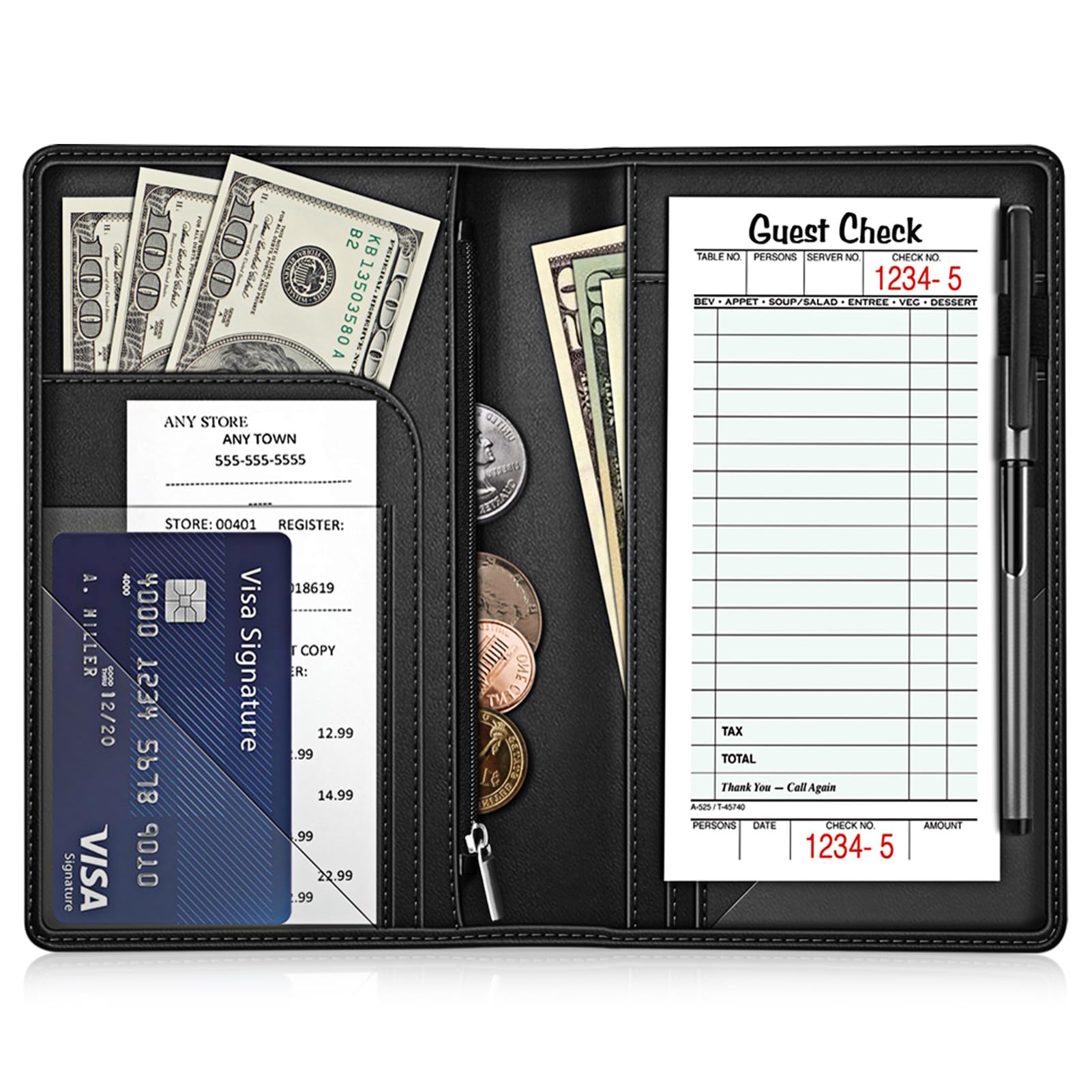 - Original Check Presenters & Server Books – Server Book Organizer with Zipper Pocket, PU Leather Restaurant Guest Check Presenters Card Holder for Waitress, Waiter, Bartender (Black) by Fintie