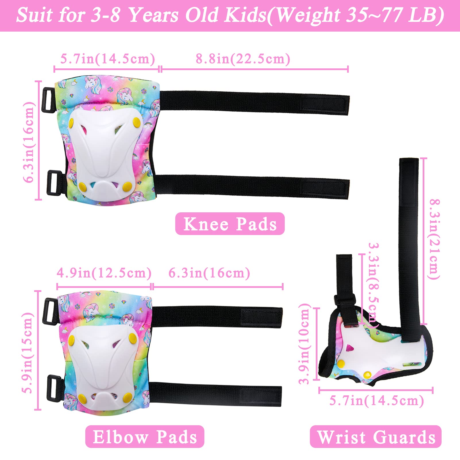 - Original Knee Pads – Knee Pads for Kids Unicorn Knee Elbow Pads Wrist Guards with Drawstring Bag Adjustable Protective Gear Set for Girls Boys Inline Skating Bike Cycling Skateboard Scooter, 3-8 Years, Rainbow by FIODAY