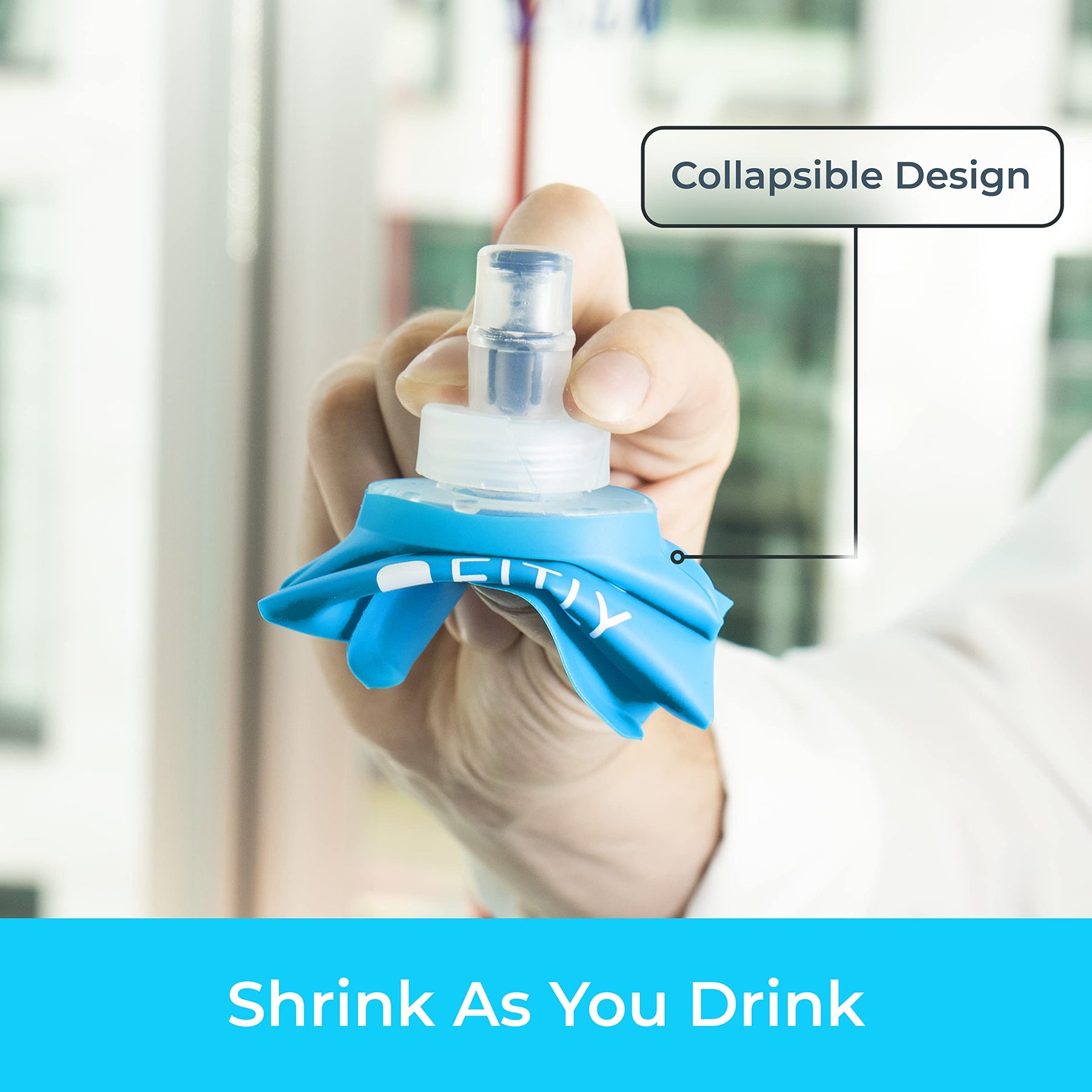- HYDRATION ON THE MOVE: Our collapsible running soft flask is a compact and eco-friendly way to stay hydrated on the move! The soft water bottle is the perfect hydration tool for active individuals. Our soft water bottles for runners shrink as you drink, taking up minimal space and won’t slosh around, making it perfect for running, hiking, skiing or any rigorous activity.