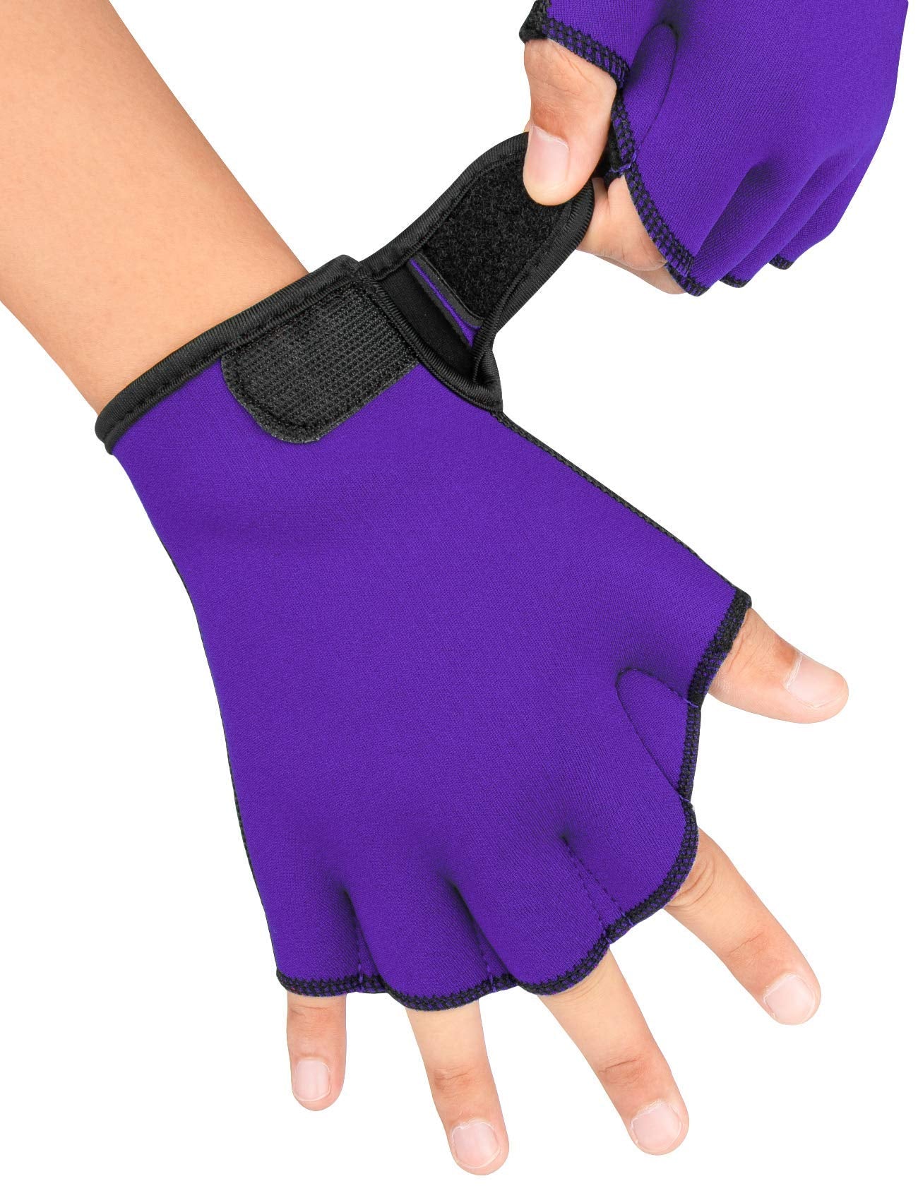 - Original Aquatic Gloves – Aqua Gloves Webbed Paddle Swim Gloves Fitness Water Aerobics and Swimming Resistance Training Gloves for Men Women Children Purple L by FitsT4 Sports
