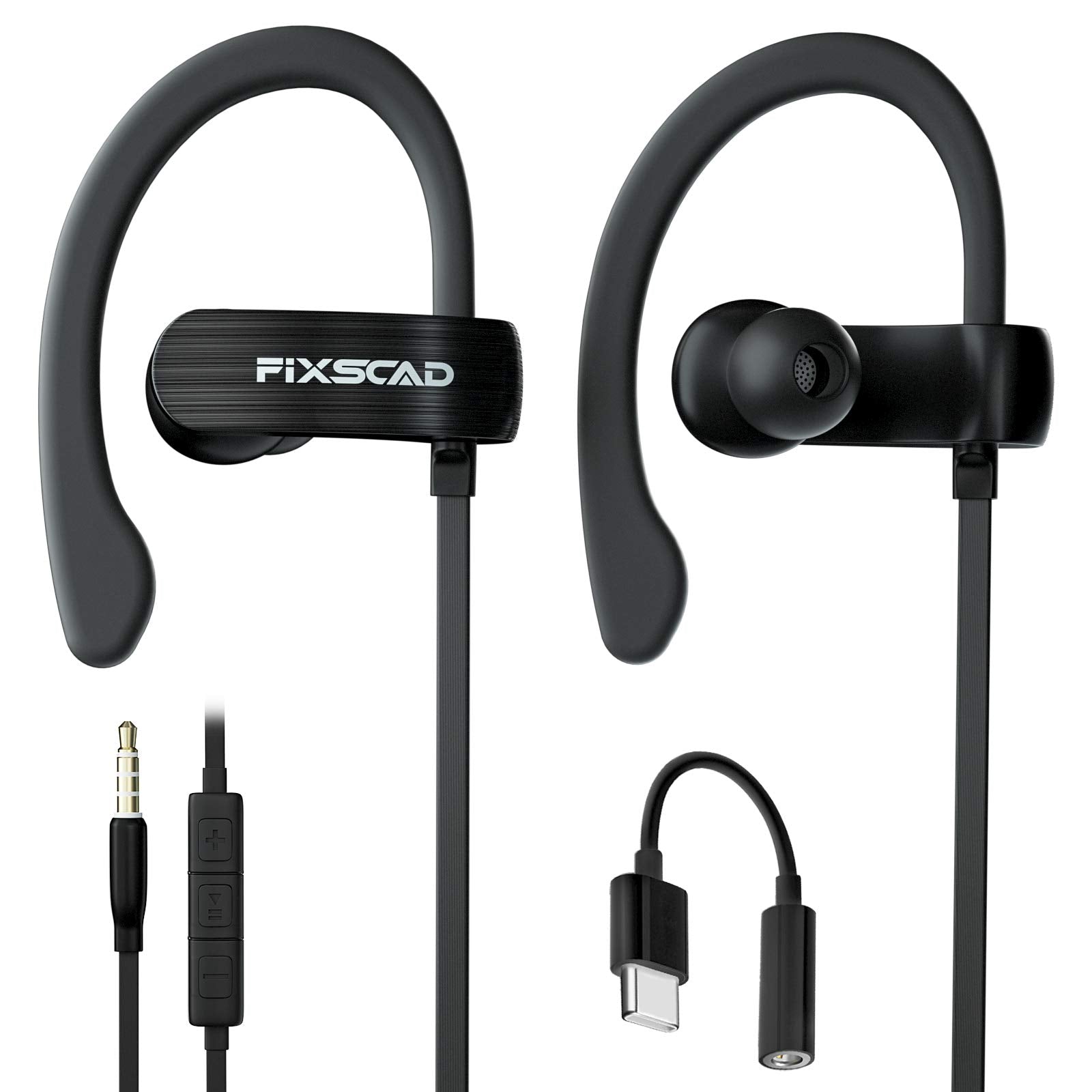 - Original Earbud Headphones – FIXSCAD Y171 Sports Earbuds Wired with Microphone, Soft Wrap Around Earphones with Over Ear Hook, in Ear Running Headphones for Exercise Compatible with Samsung, Free Type C to 3.5mm Adapter by Fixscad