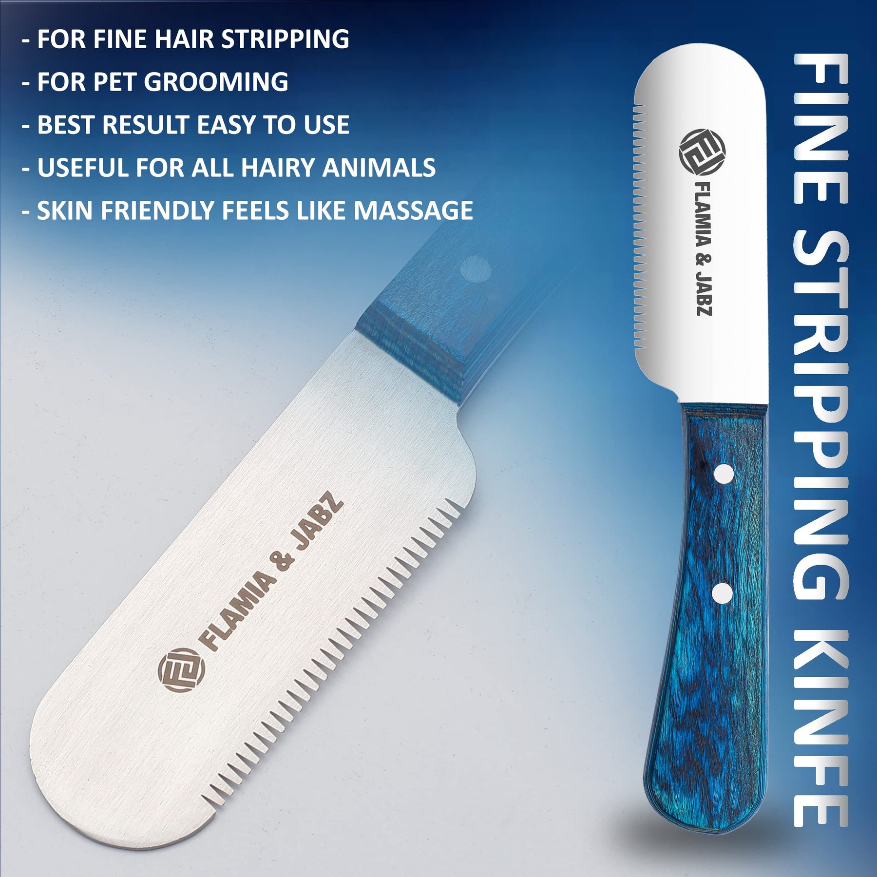 - Flamia & Jabz stripping knives are best for removing unwanted undercoat and useful for finish work to create a show stopper look for your pet.