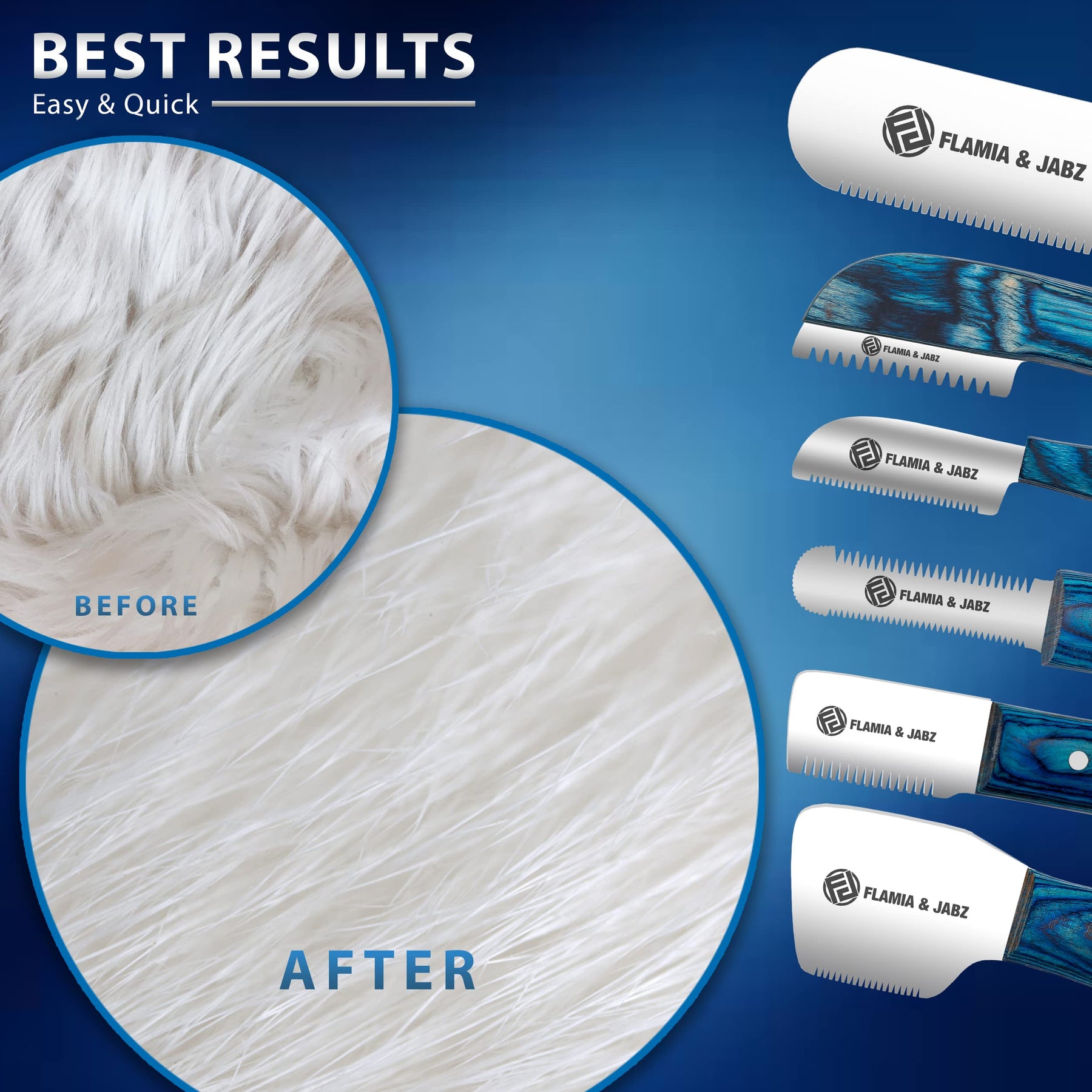 - Original Shedding Tools – FLAMIA & JABZ FJ Professional Stripping Knife kit (6 pieces set) for Dogs & Pets, Wooden Handle Grip with Stainless Steel Blade (Right handed) (Blue) by FLAMIA & JABZ