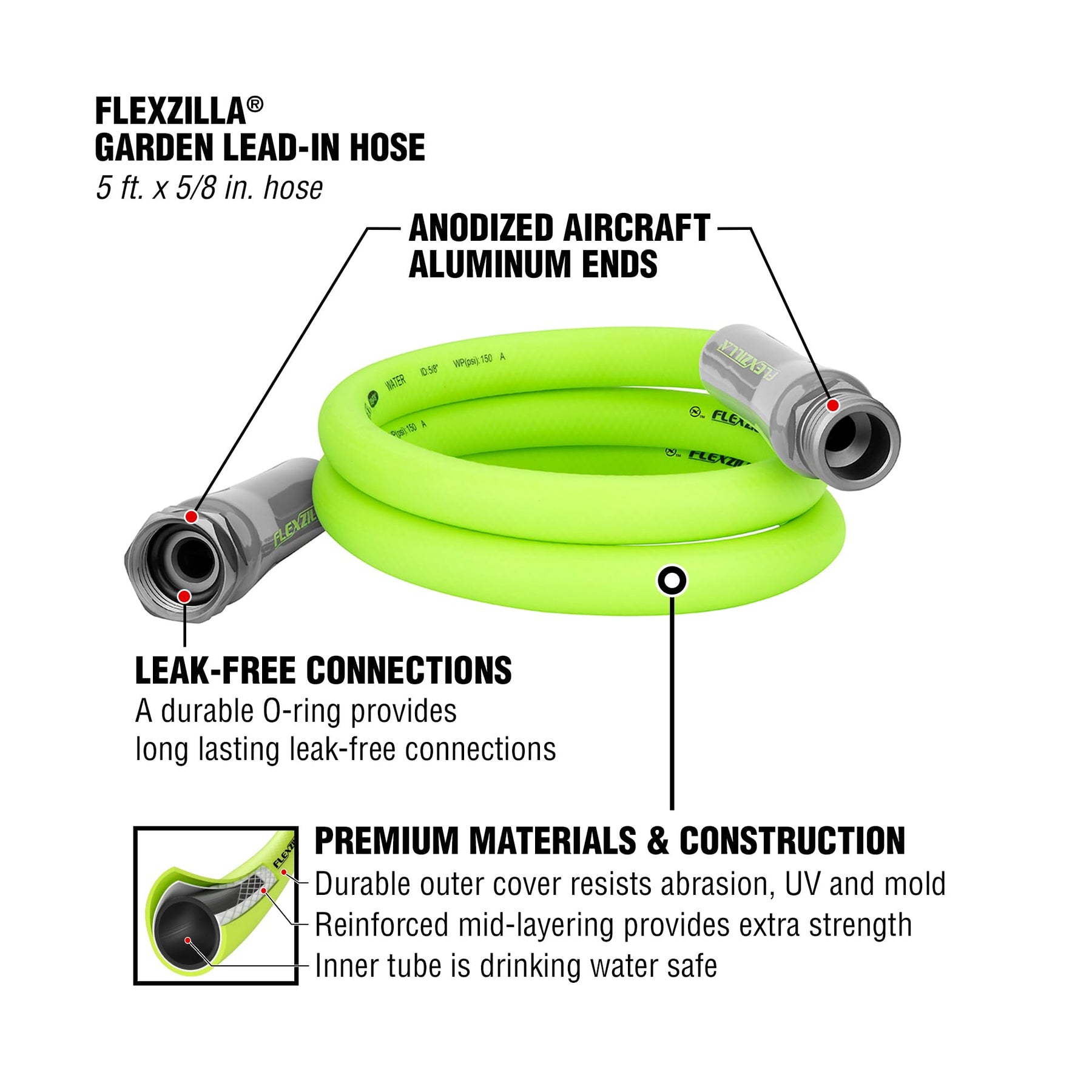 - Original Garden Hoses – Garden Lead-in Hose, 5/8 in. x 5 ft., Heavy Duty, Lightweight, Drinking Water Safe - HFZG505YW by Flexzilla