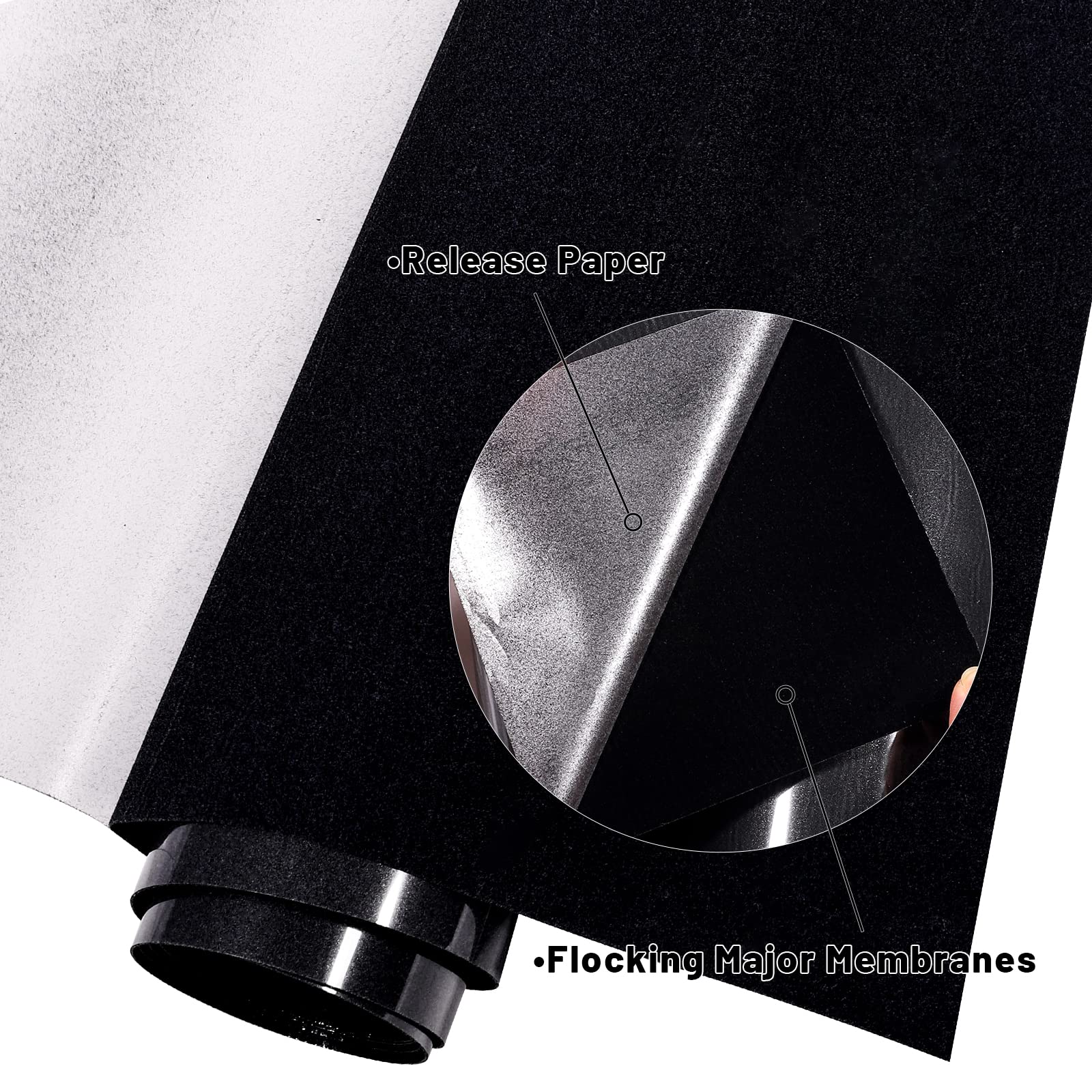 - WARM HTV VINYL:Self-adhesive flocking vinyl short plush vinyl,9.8inches * 72 inches per roll,classical black color.
