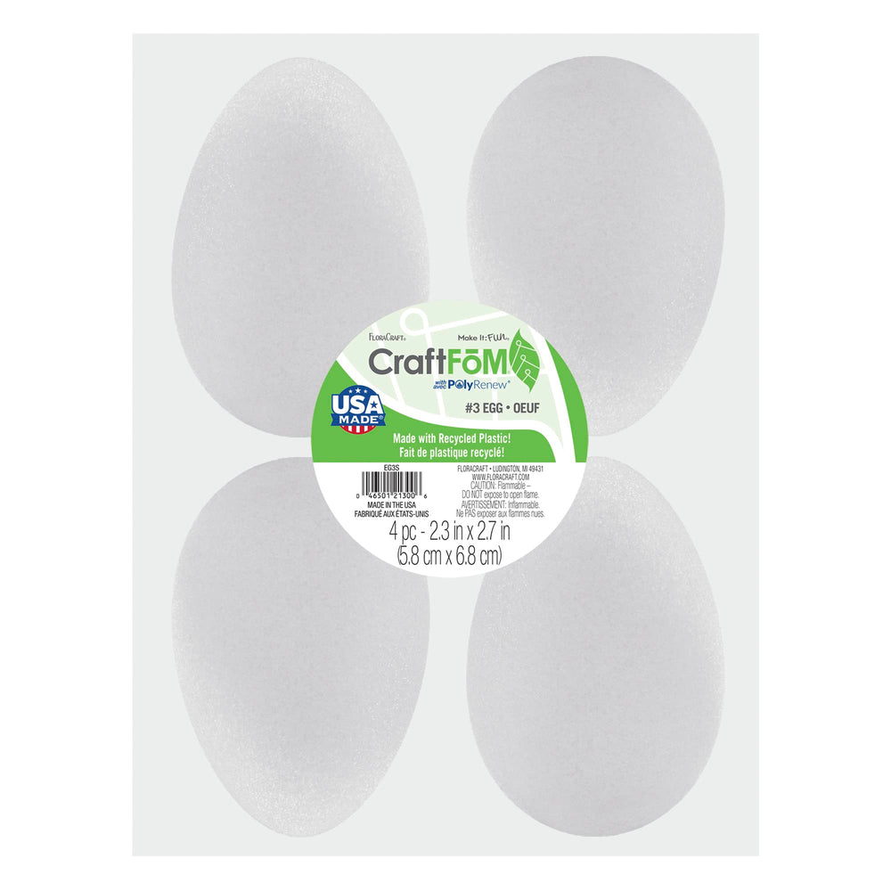 - This package contains four 2.3 x 2.7 white CraftFoM eggs.