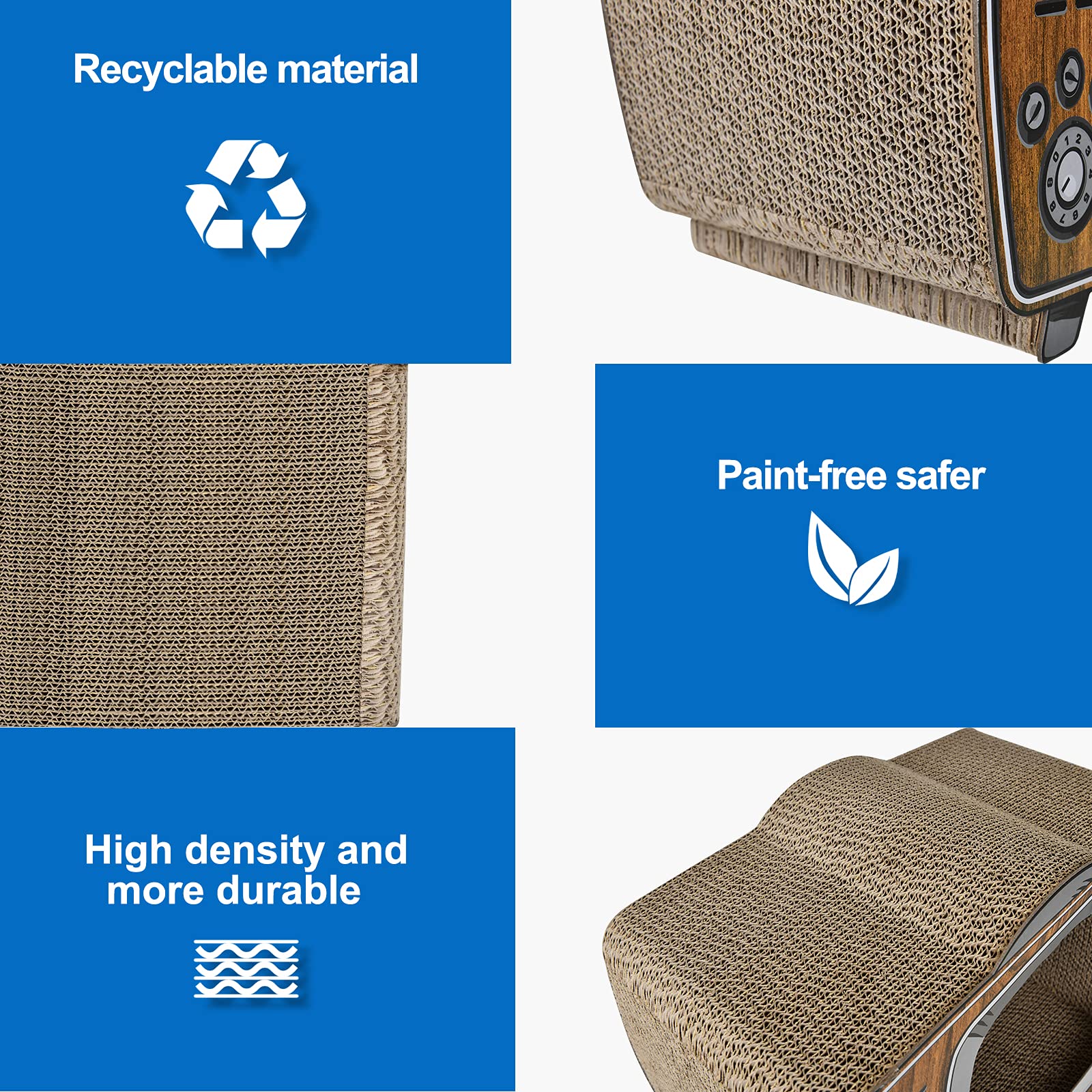 - [PROTECT FURNITURES]: Unique TV design makes it easier for cats to scratch. Cat scratching Board can be used for both vertical and horizontal scratches, and it is fully reversible.