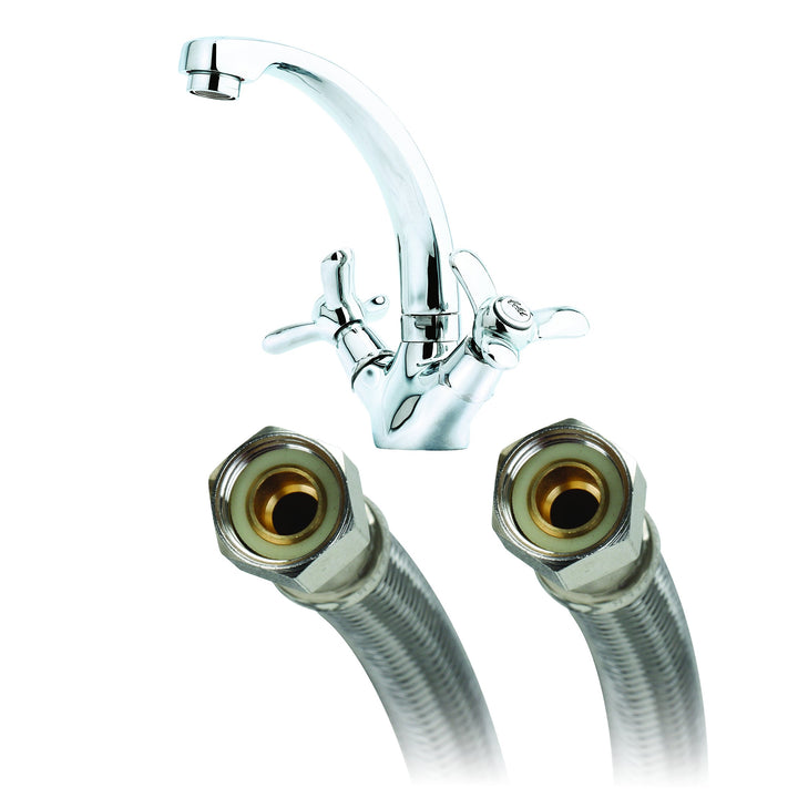 - Original Pipe Fittings – B6F16 Faucet Connector, Braided Stainless Steel - 3/8 Female Compression Thread x 3/8 Female Compression Thread, 16-Inch Length by Fluidmaster