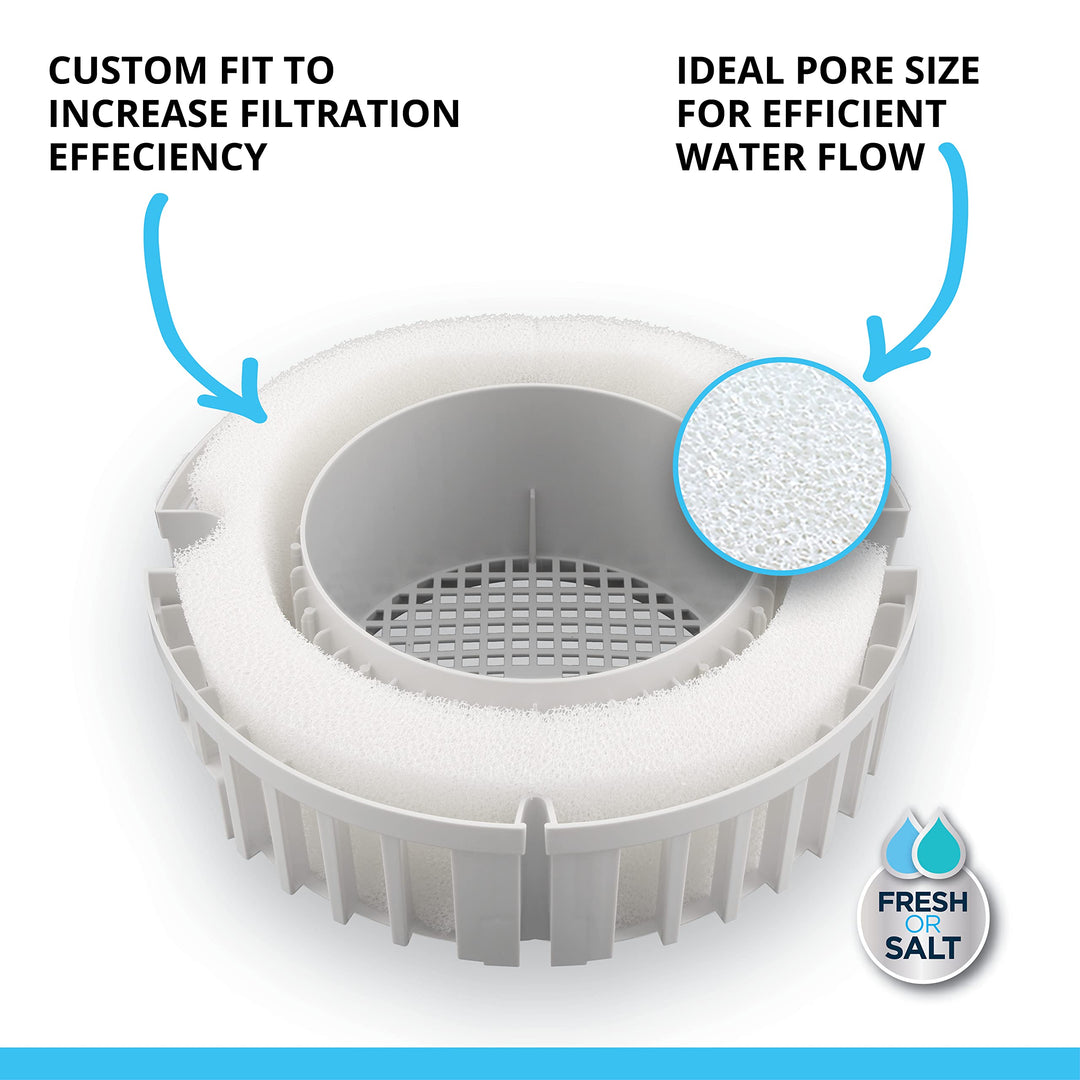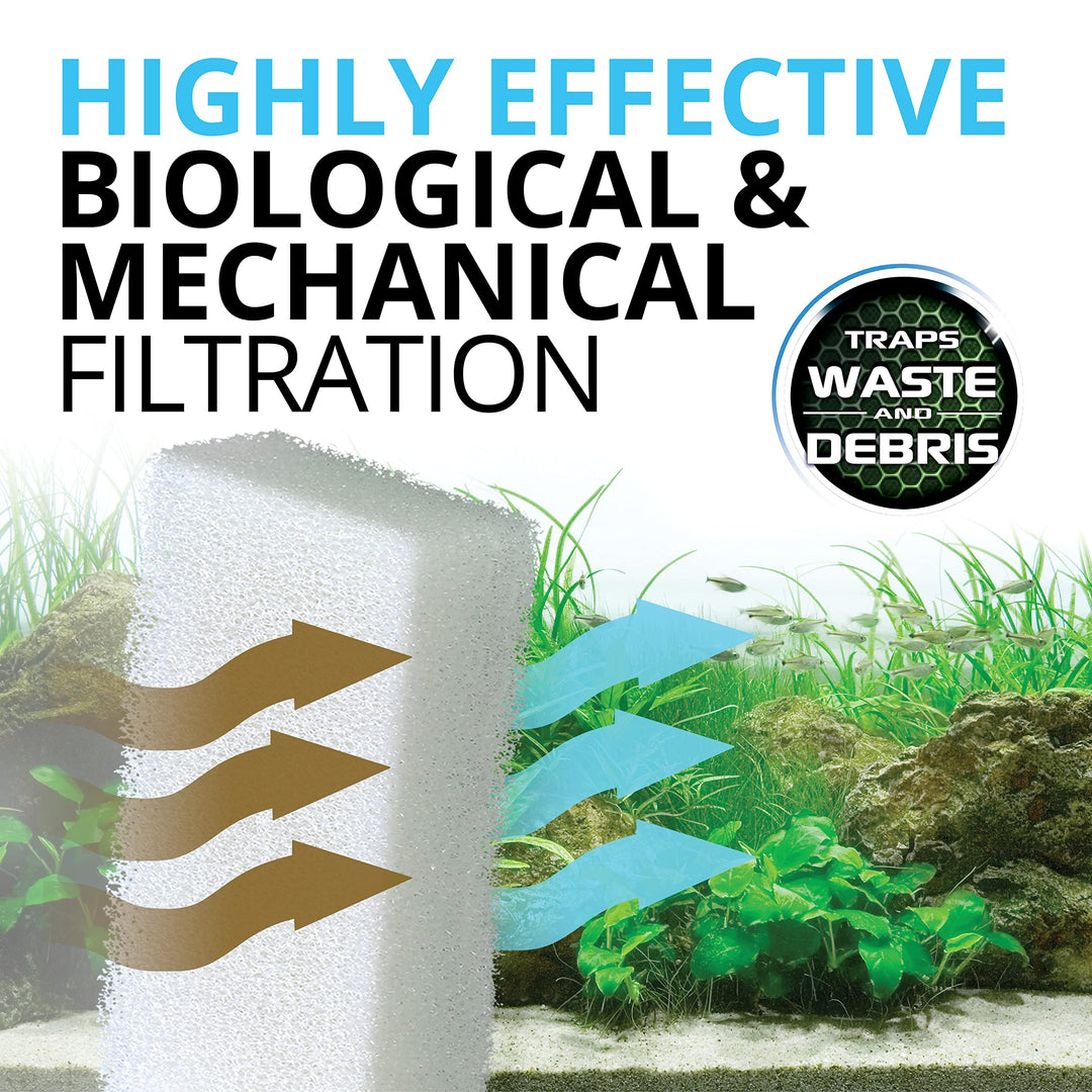 | directions | Fluval Foam Inserts capture large particles and debris for effective mechanical filtration, the crucial first stage in the filtration process. Custom fit to prevent bypass, they have a pore size that allows efficient water flow with less clogging for long-lasting filtration. These inserts also enhance biological filtration. For freshwater and marine environments. For filter models: FX5 |