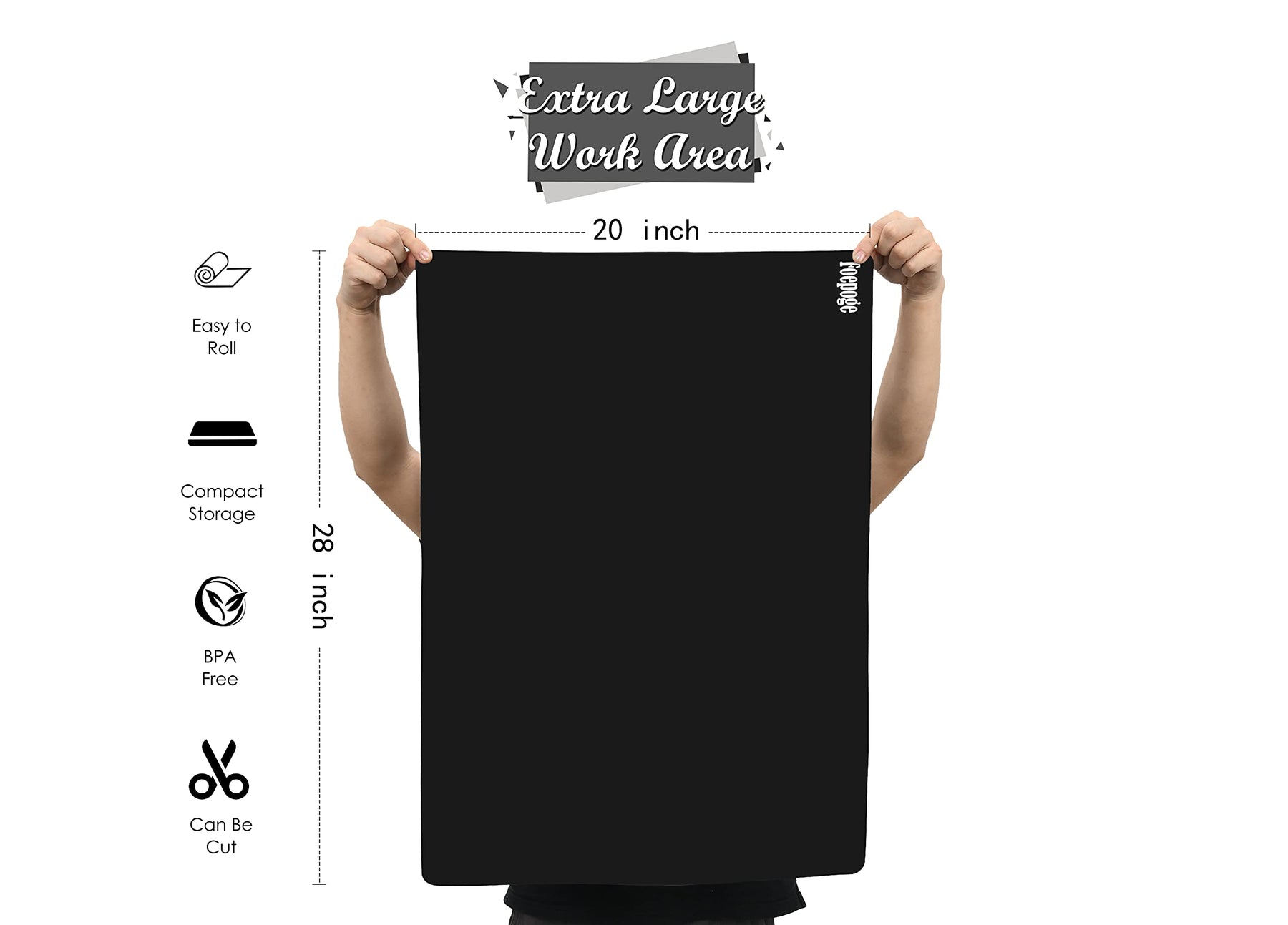 - Extra Large work area: The size of the large silicone mats for epoxy is 27.9 x 20 inches. It is big enough to prevent resin splatters or paint stains. Used under jewelry casting resin molds as table cover, this resin mat can prevent your desk from being scratched and stained. The matte surface leaves the beads and jewelry in place. Keep your craft table tidy always.