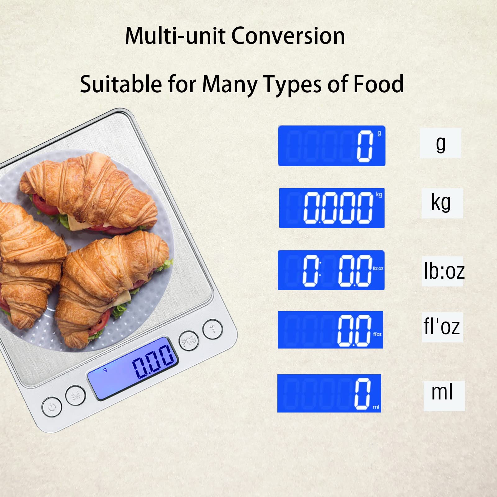 - Original Digital Scales – 0.1Gram Precision Multifunction Kitchen and Food Stainless Steel Scale, Electronic Digital Balance Weight Pocket Scale 3000g-Silver by Anferstore