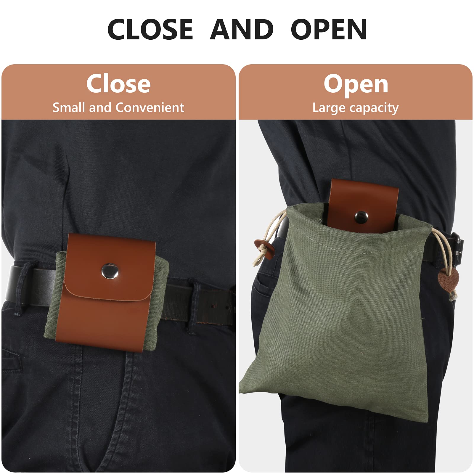 - Hand-Free Harvesting Bag & Easy to Use - This waxed canvas pouch bag comes with buckles unlocked, the belt or backpack through the buckle can be fixed. Convenient for hands-free use while you're on the go, hands-free access when you’re on the trail. When you’ve found enough treasure, just pull on the drawstring to close the bag to prevent any items falling out. This bag good for flowers, mushrooms r fruit picking ect