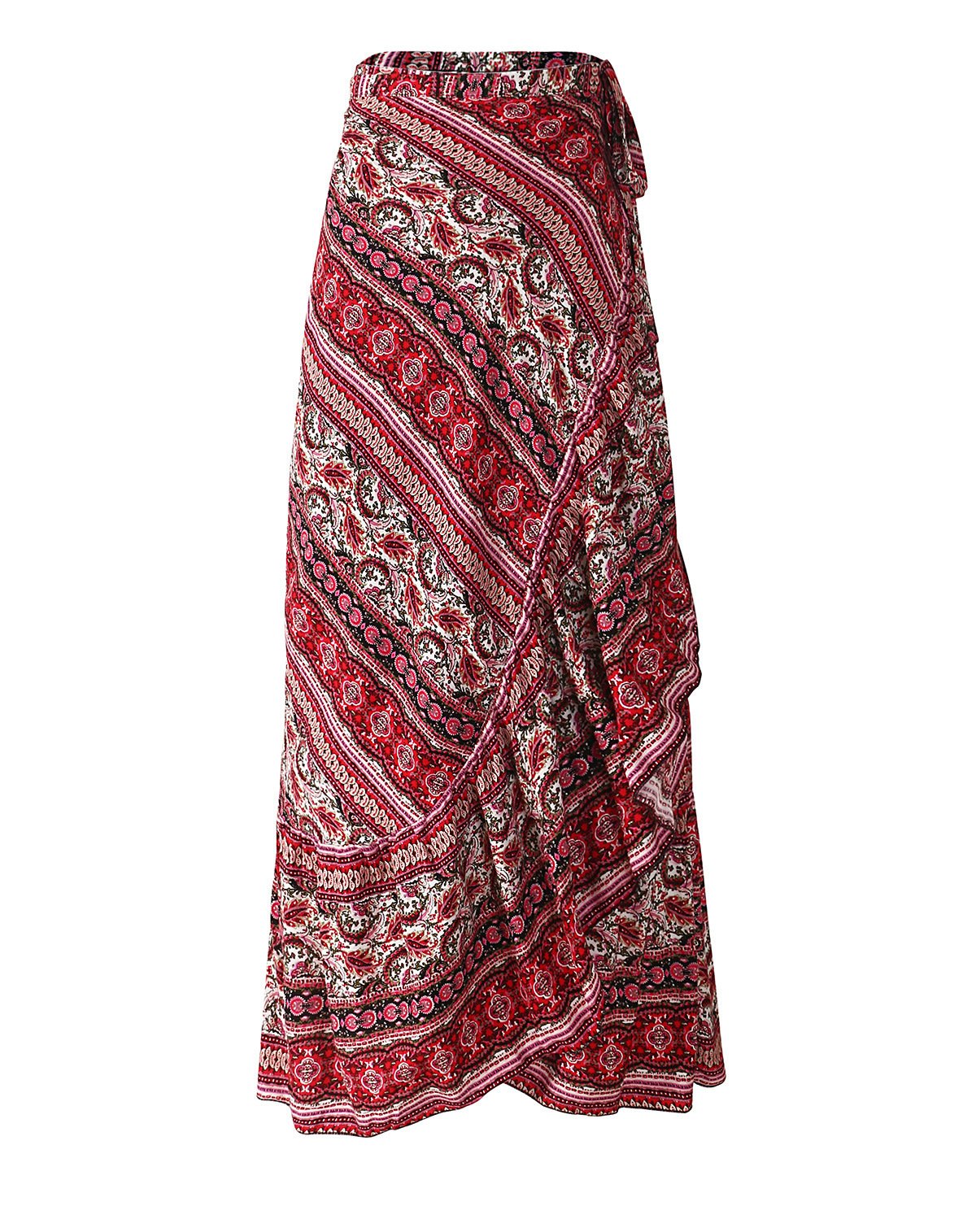 - Original Skirts – Women Boho Print High Waist Side Wrap Bohemian Asymmetric Hem Maxi Long Wrap Skirts One Size(red) by ForeMode