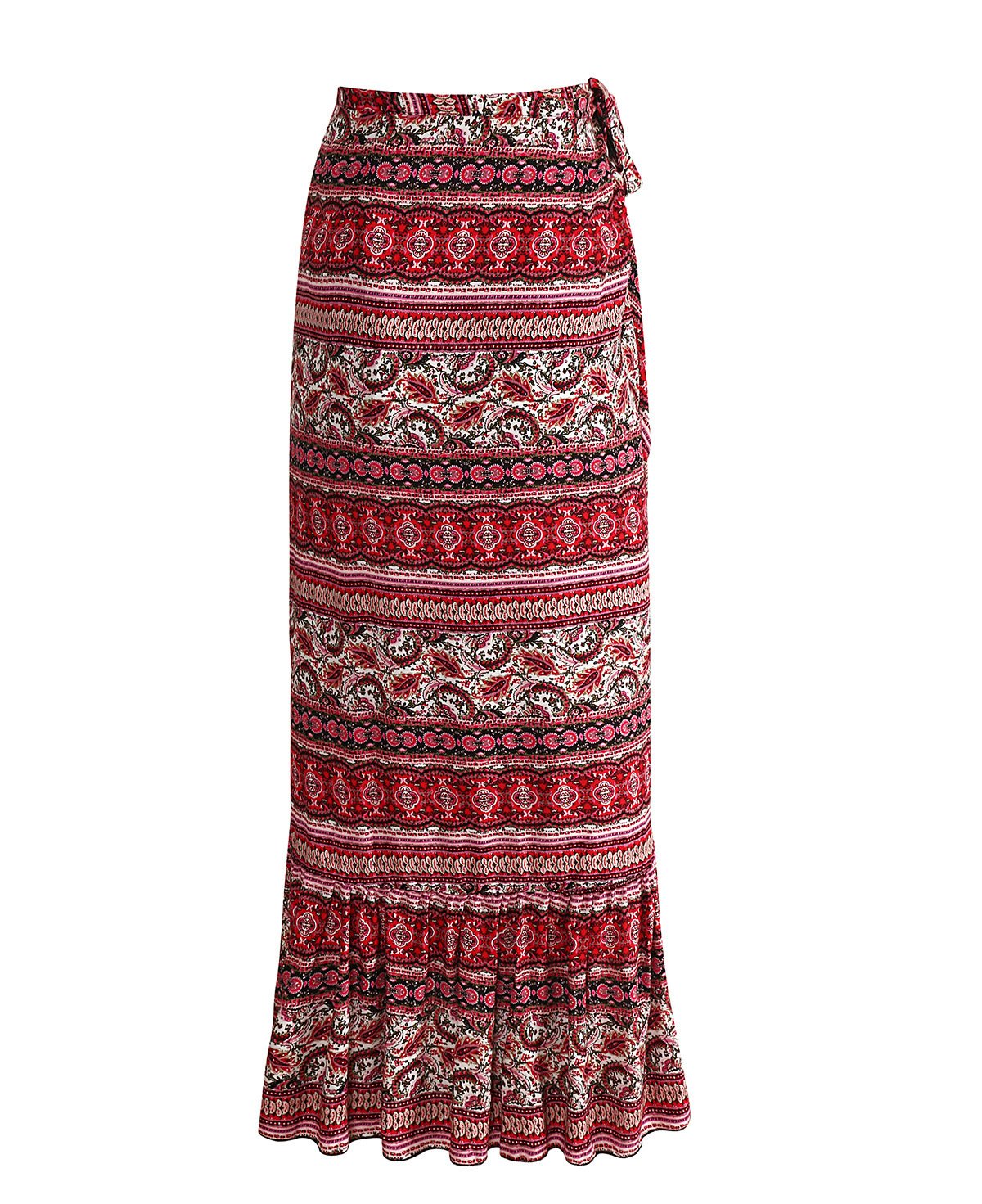 - Stand out in style with our beautiful printed casual long skirts, featuring a wrap design and boho flair.