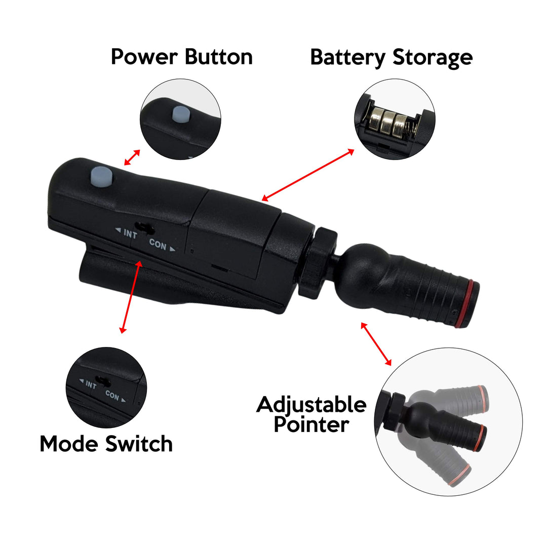 - CON (continuous mode) once you press the power button, the laser beam will stay on (will last about 35-40 minutes, then the voltage will decrease, the laser will also become weak) Turn OFF for 1 hour, and then it should be normal again. (We suggest that CON mode is only used to align the sight)