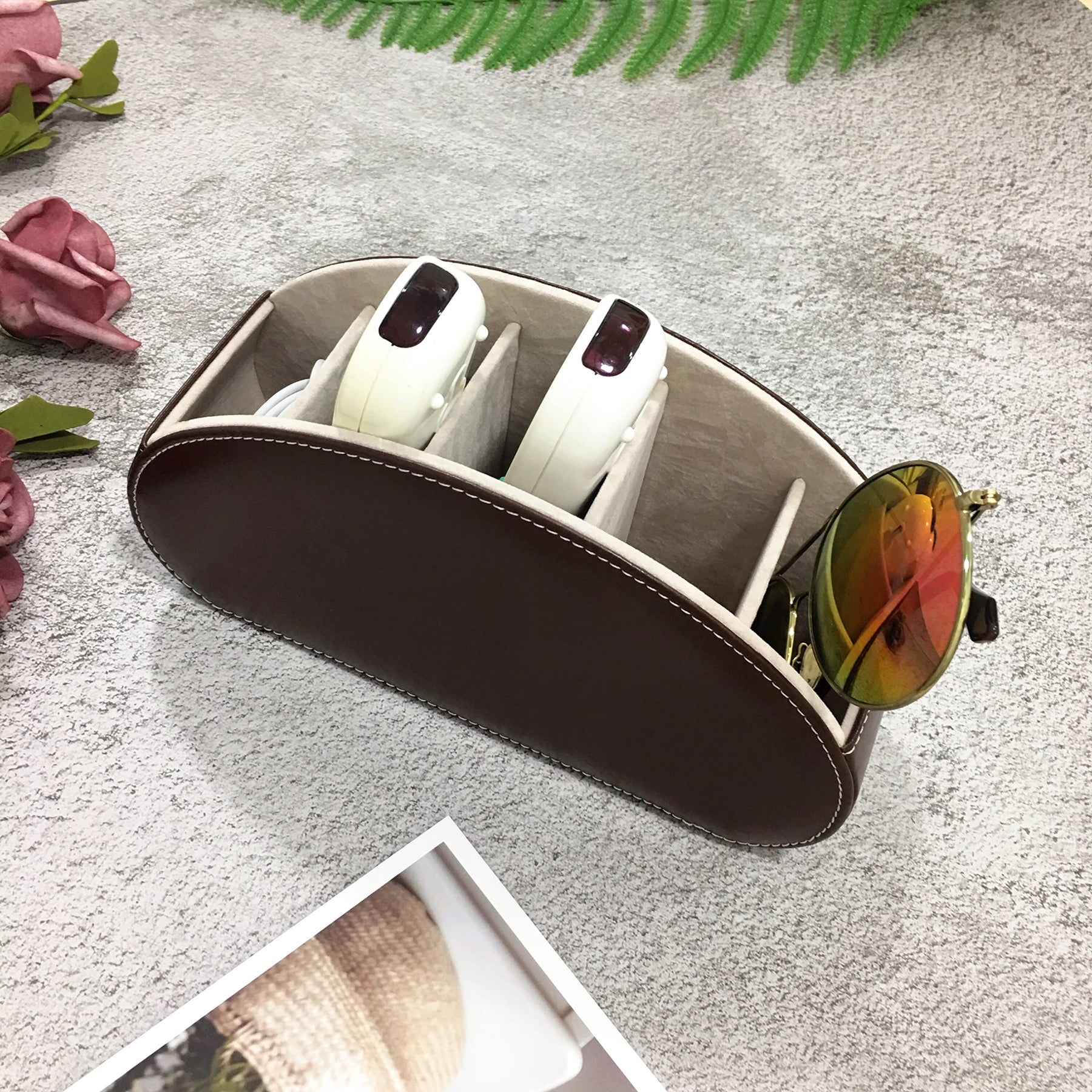 - Original Supply Organizers – Remote Control Holder Organizer Table Desk Leather Control Storage TV Remote Control Organizer with 5 Spacious Compartments (Dark Brown with Beige Lining) by Fosinz