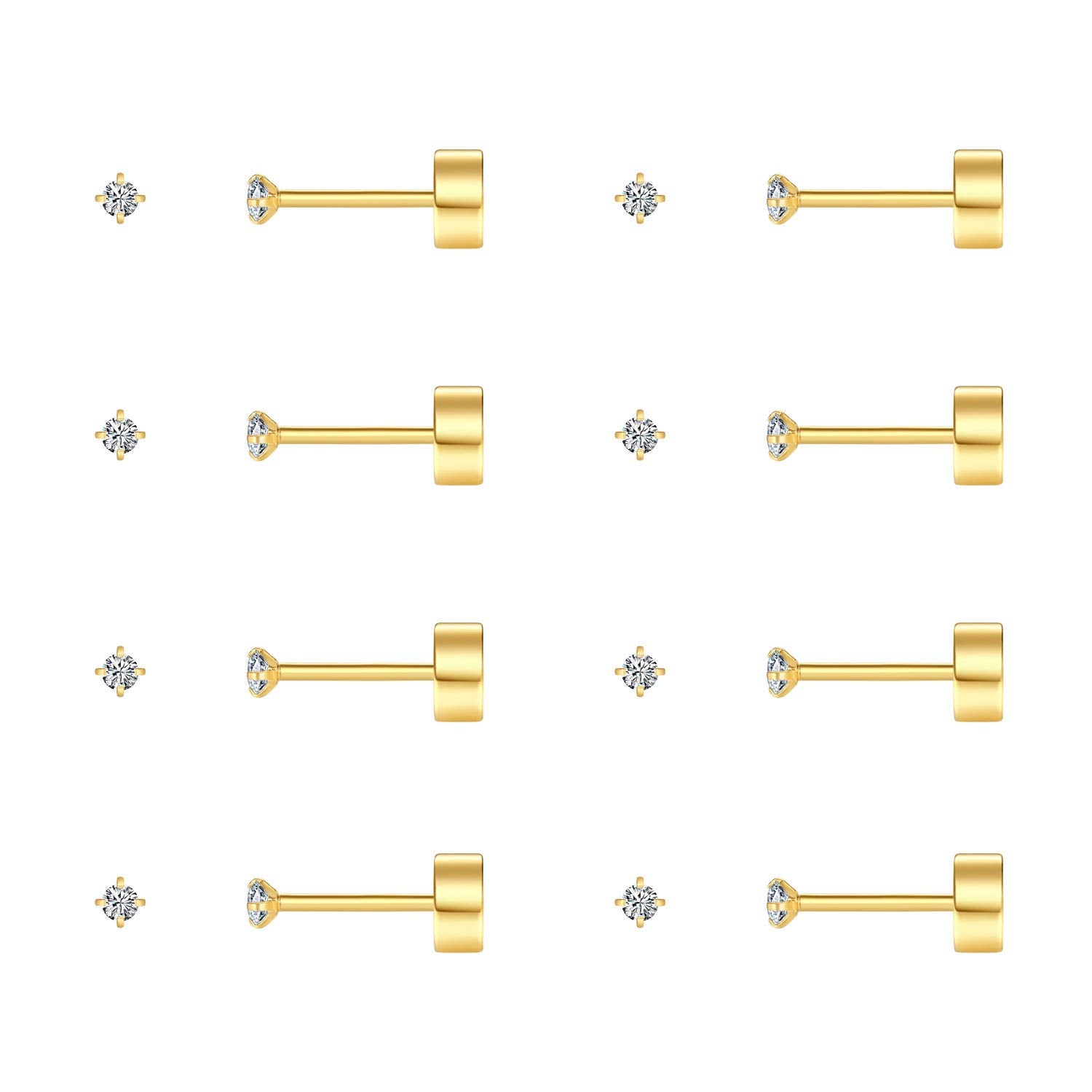 - Original Earrings – 8 Pairs 2mm Tiny Flat Back Earrings for Women Men 14K Gold Plated Surgical Stainless Steel Stud Earrings Set Cubic Zirconia Cartilage Earring Hypoallergenic (Gold, 2mm CZ) by FOSIR