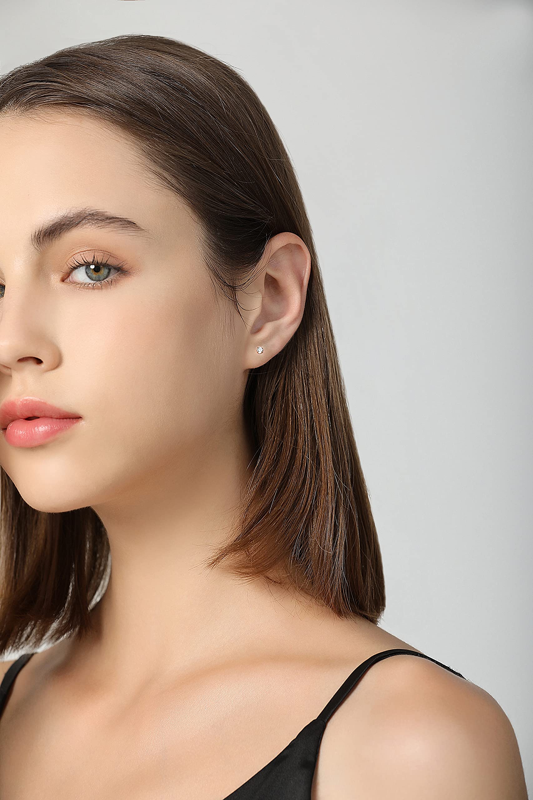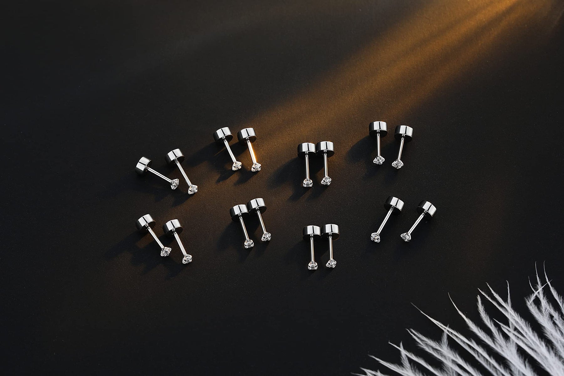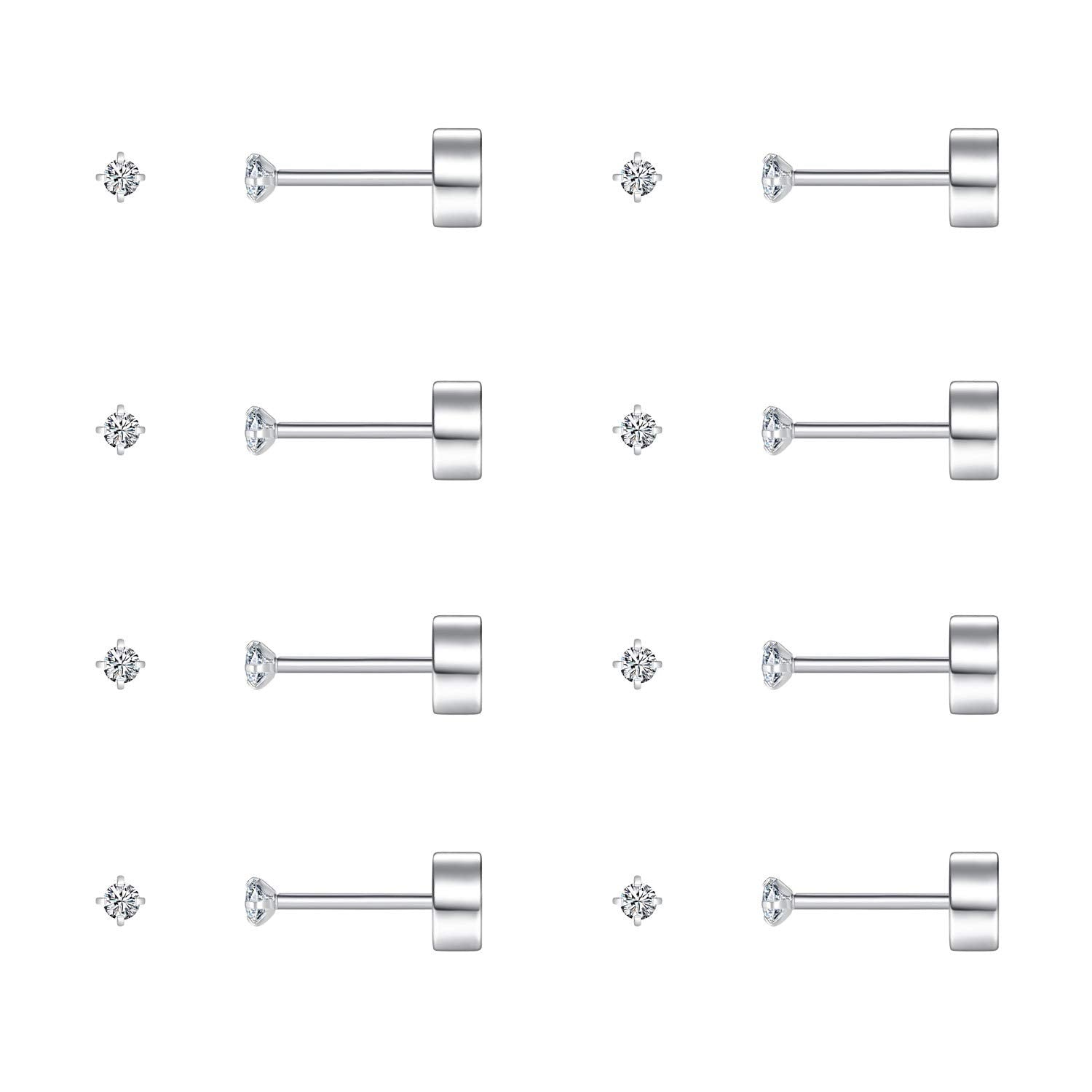 - Original Earrings – 8 Pairs Tiny Flat Back Earrings for Women Men Surgical Stainless Steel Stud Earrings Set Cubic Zirconia Cartilage Earring Hypoallergenic (Silver, 2mm CZ) by FOSIR