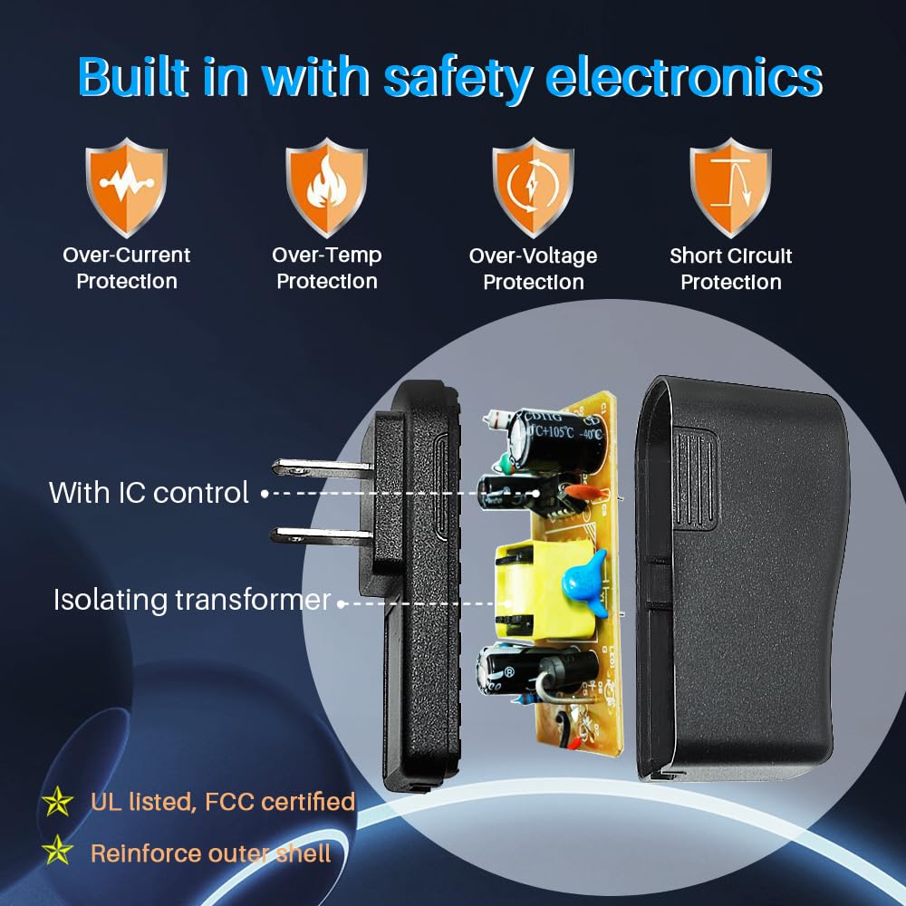 - Extended cord: 8.4 feet / Input: 100V-240V AC / Output: DC 12V, 1.5A