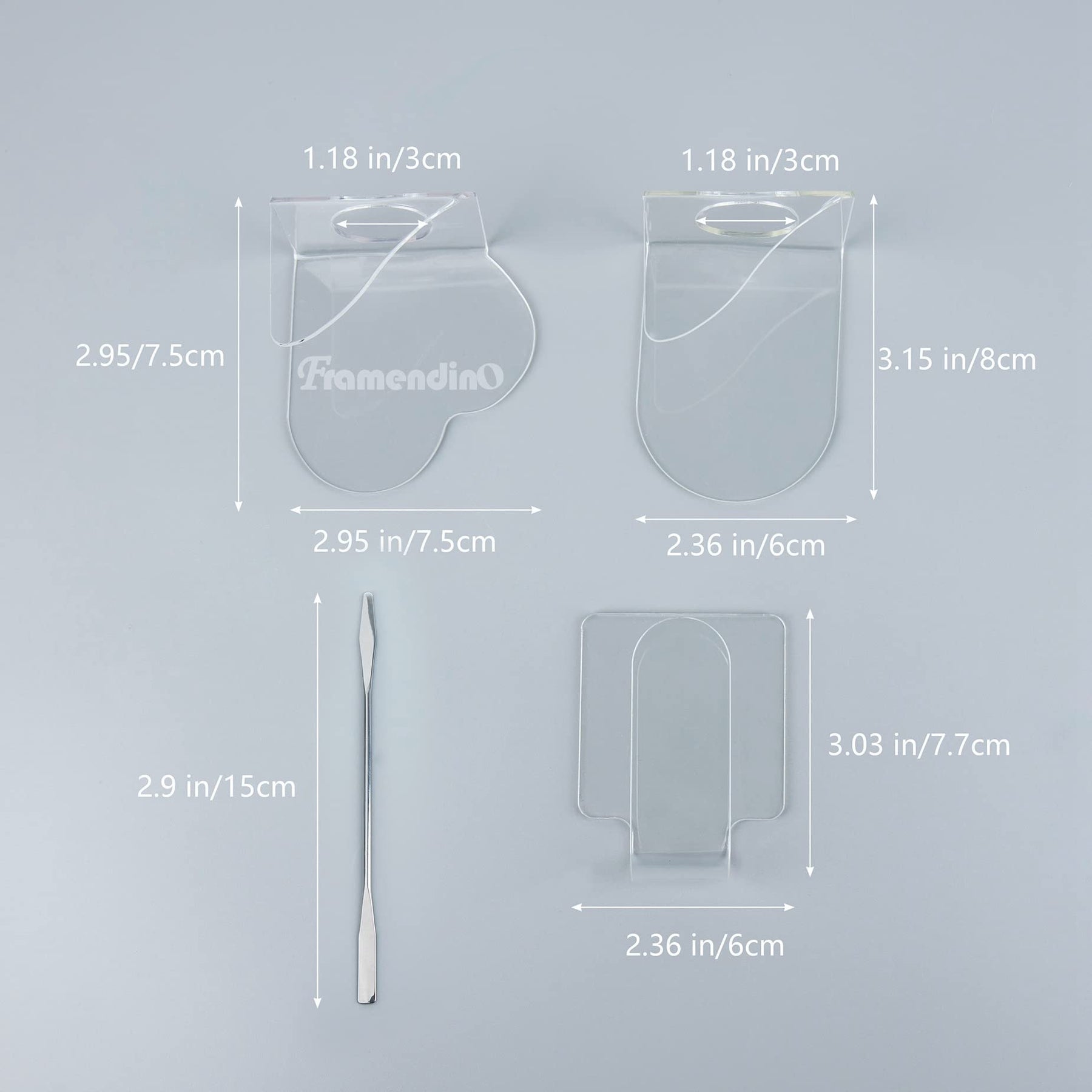 - Package Contain - You Will Receive 6 Pieces of Products, Including Heart, Half Ring, Square 3 Acrylic Makeup Plates and 3 Stainless Steel Double End Makeup Scrapers, Practical and Beautiful, Perfect For Daily Makeup Use