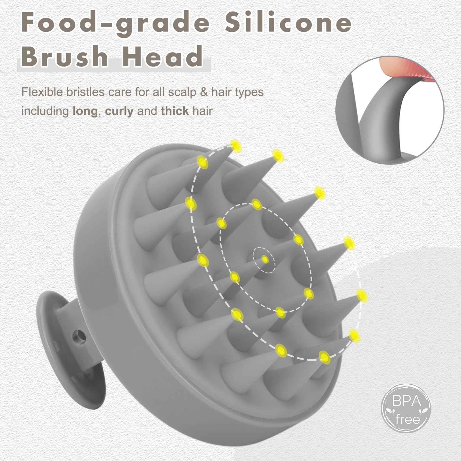 - Original Scalp Massagers – FReatech Hair Scalp Massager Shampoo Brush, Updated Manual Head Scrubber with Long & Flexible Silicone Node, Reach Hair Roots Easily, Remove Dandruff and Exfoliate, Stimulate Hair Growth, Gray by FREATECH