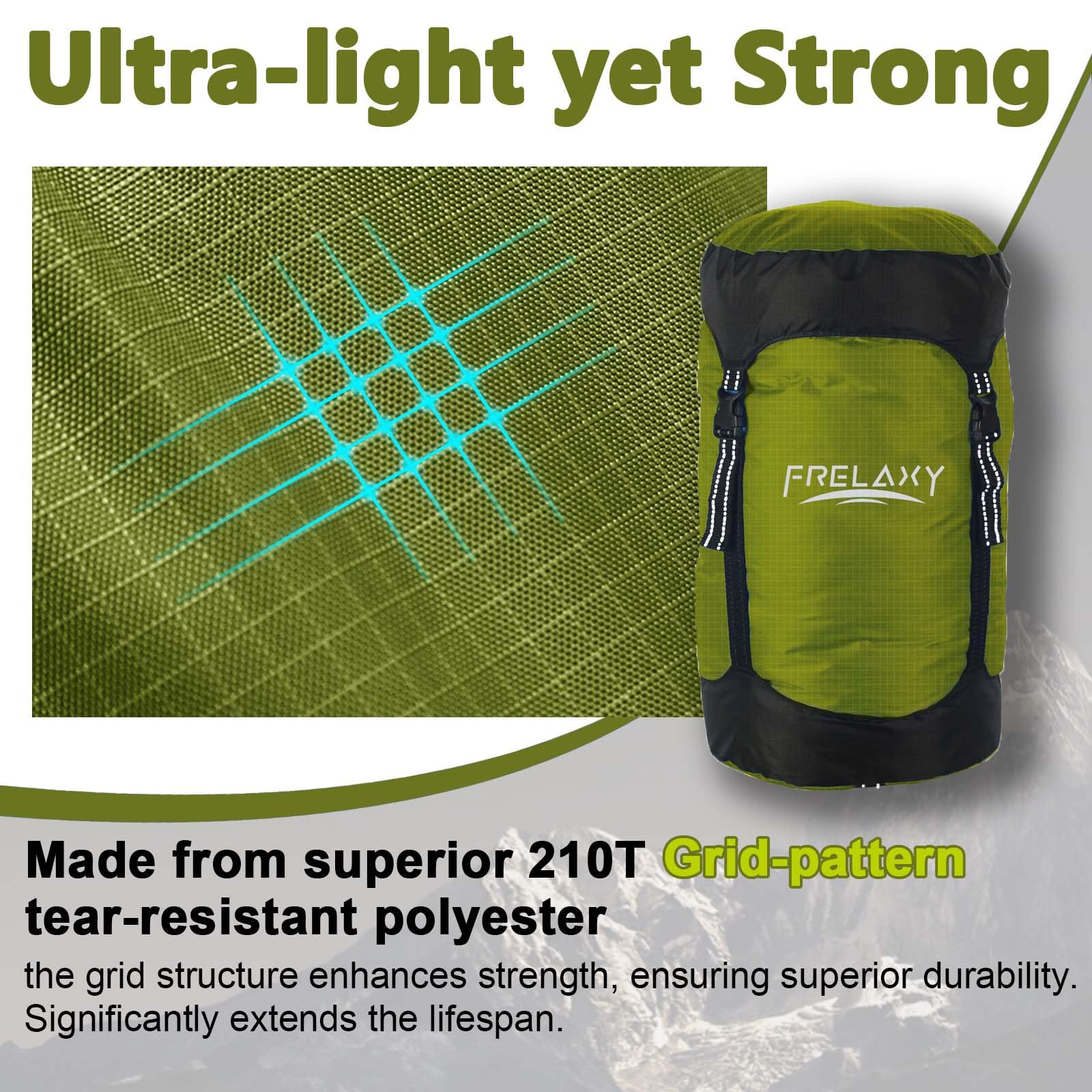 - SAVE 40% MORE SPACE: Frelaxy Compression Stuff Sack is an incredibly simple and practical solution to space-saving, they will give you more space to pack what you need and give you an unprecedented portable experience.