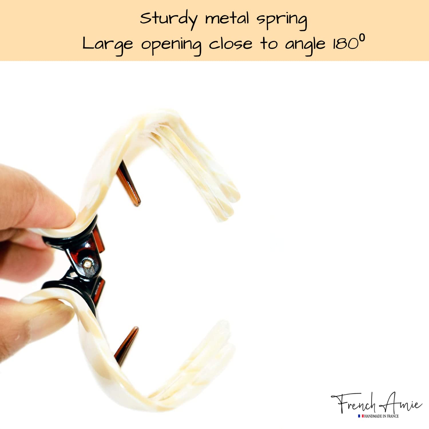 - Original Clips – Tubular Marble Ivory Handmade Large Hair Grip Claw Clips Clamps Indoor Outdoor for Women and Girls (7.5 cm/ 3 Inch) by French Amie