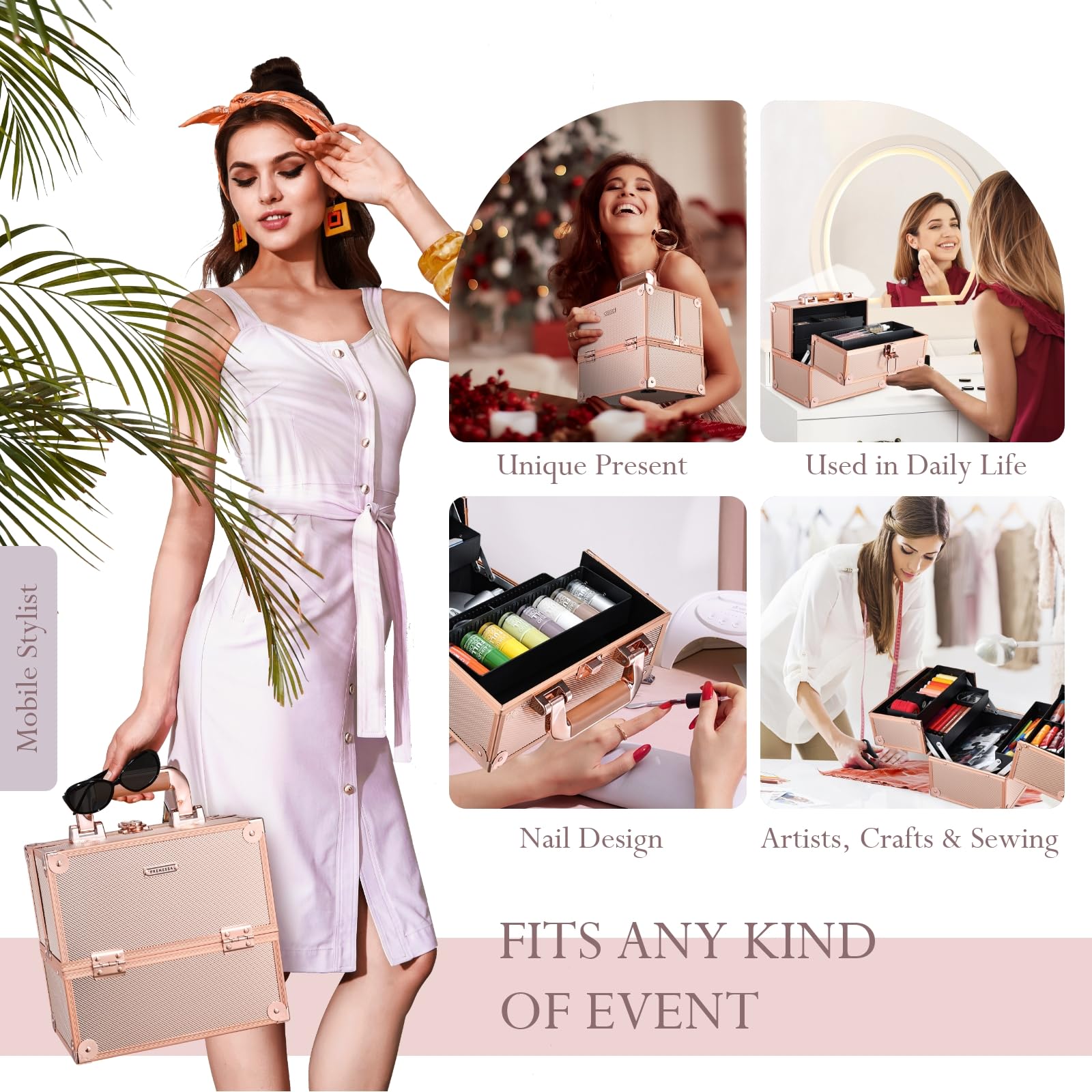 - Original Train Cases – Makeup Train Case 10 Inch Travel Beauty Cosmetic Box Professional 4-trays Jewelry Storage Organizer with Lockable Portable for Women and Girls - Rose Gold by FRENESSA