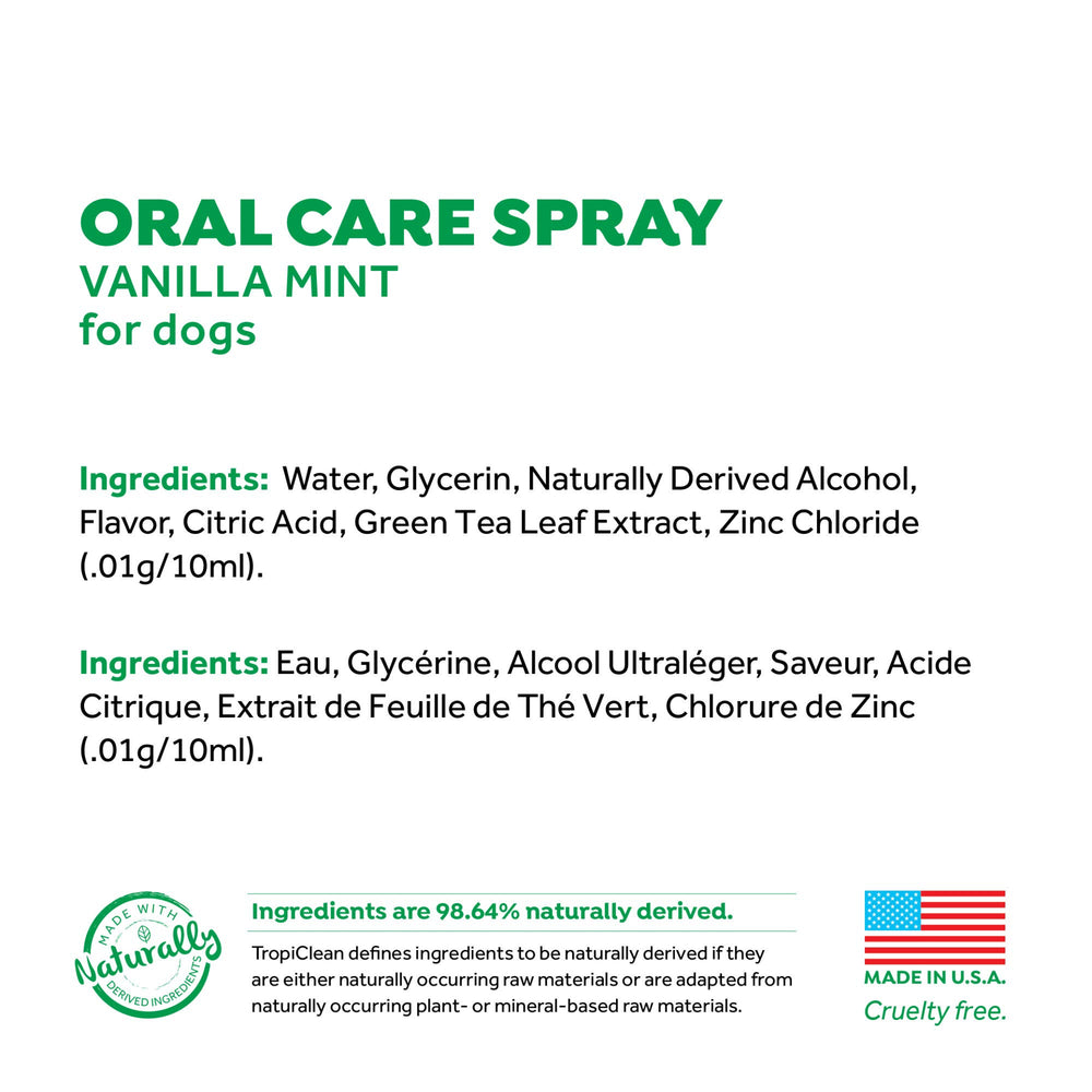 - TropiClean Fresh Breath Vanilla Mint Flavor Oral Care Spray provides noticeably fresher breath in an easy to use spray.