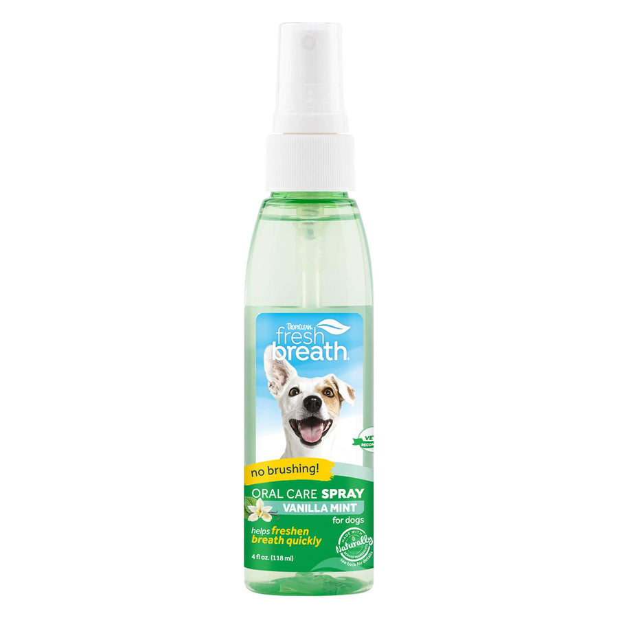 - TropiClean Fresh Breath Vanilla Mint Flavor Oral Care Spray helps freshen breath with a vanilla mint flavor that pets and pet parents alike love.