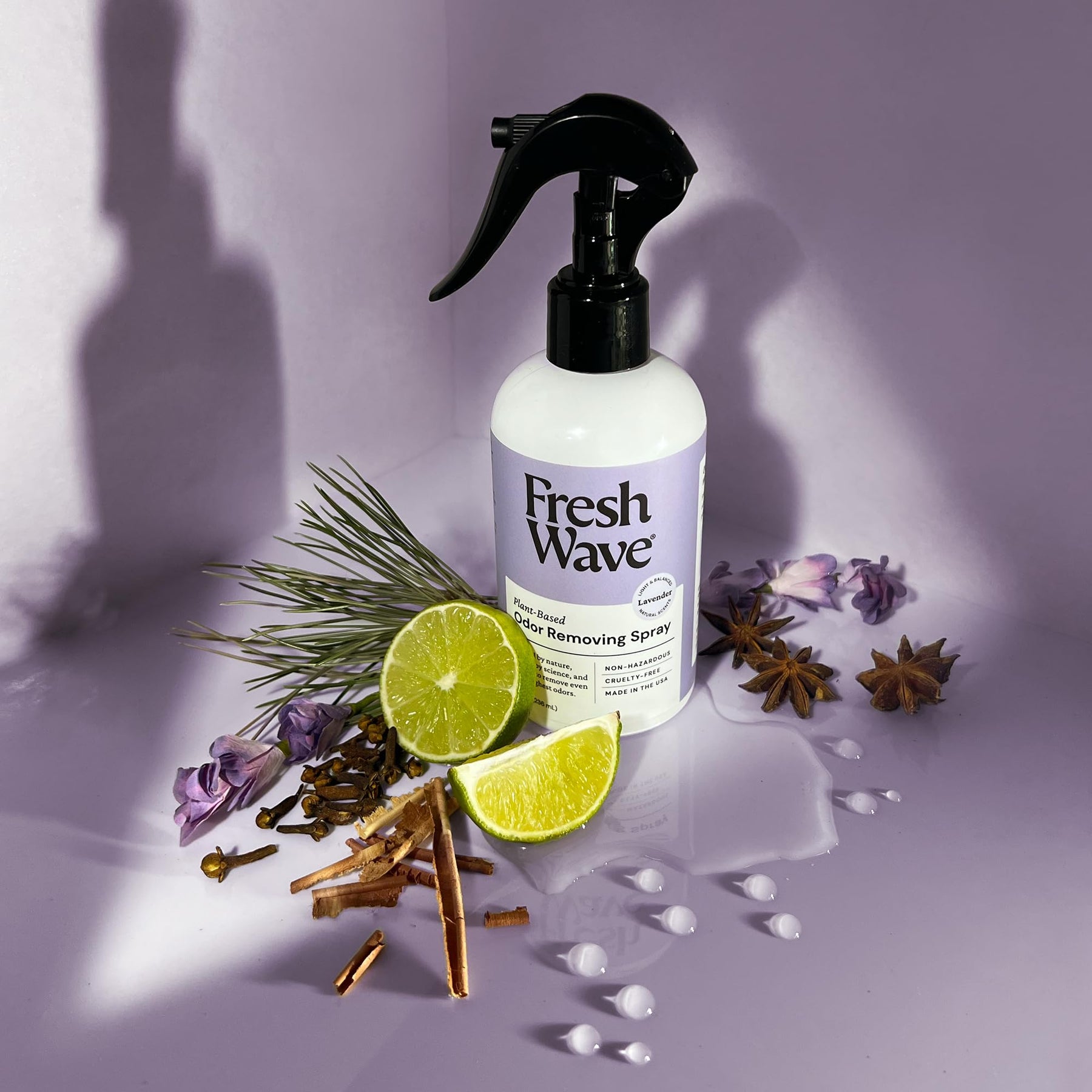 - Fresh Wave's plant-based ingredients include pine needle, lime, clove, anise, and cedarwood—and, for our lavender spray, real lavender oil. The spray naturally smells like these plants, but that scent will vanish quickly in the air, leaving your space simply smelling clean and fresh.