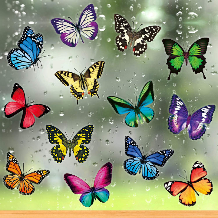 - Proper sized butterfly clings: each butterfly decal comes in about 14 x 17 cm (5.5 x 6.7 inch), proper size for using on glass panels, patio doors or bay windows to help prevent birds from hitting windows