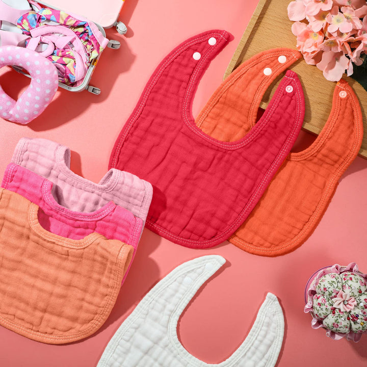 - Original Bibs & Burp Cloths Sets – 6 Pcs Muslin Bibs Baby Burping Cloth Teething Bibs Bandana Bibs 6 Absorbent Layers Muslin Bibs for 6 Month+ Baby (Pink Series) by Frienda