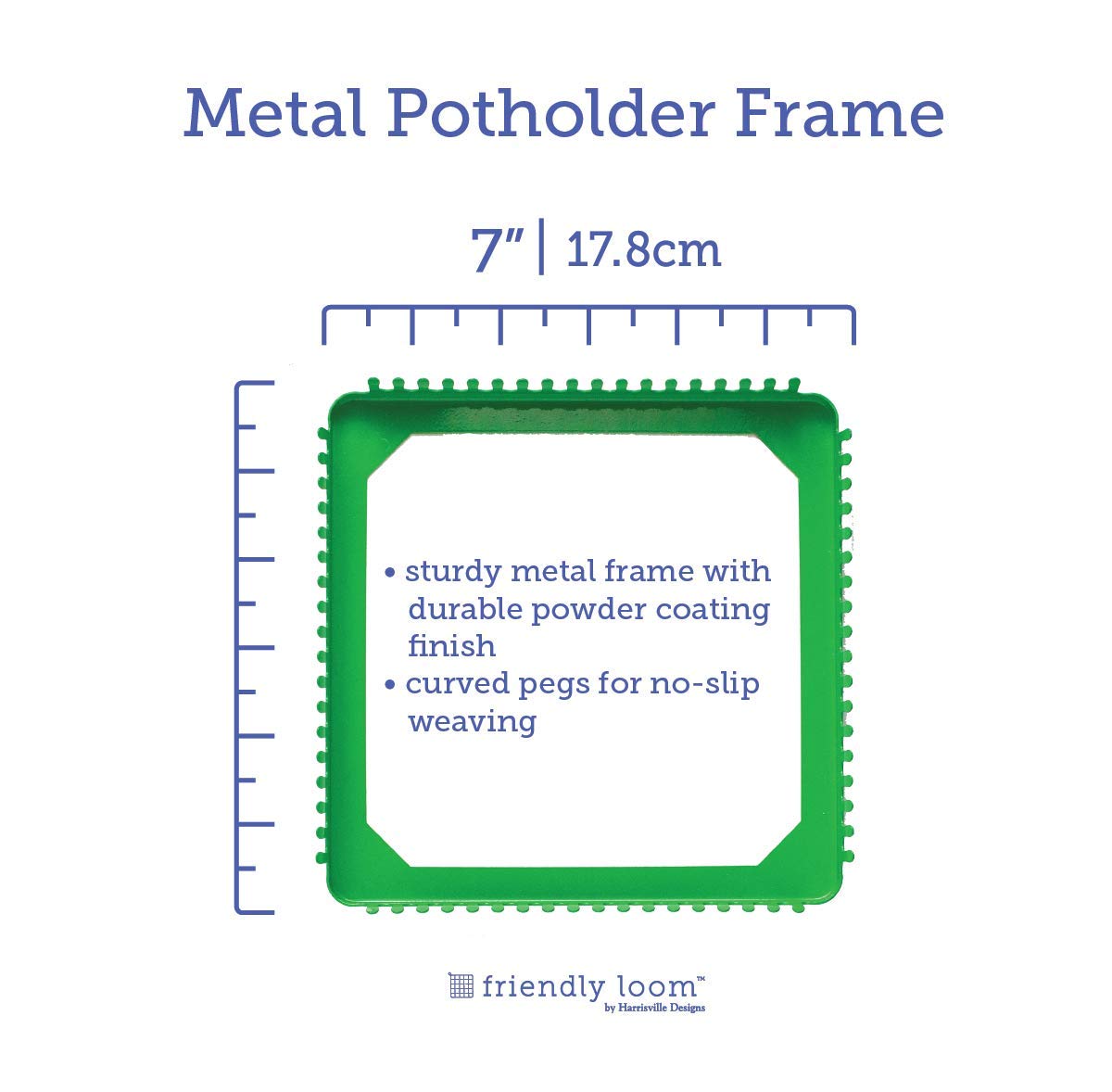 - Original Sewing – Friendly Loom 7 Potholder Kit Green Metal Loom and Bright Rainbow Color Cotton Loops, Makes 2 Potholders, MADE IN THE USA . by Harrisville Designs