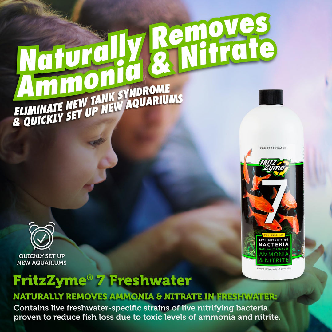- Original Aquarium Water Treatments – FritzZyme 7 Live Nitrifying Bacteria Naturally Removes Amonia & Nitrite for Freshwater Fish (32-Ounce) by Fritz Aquatics