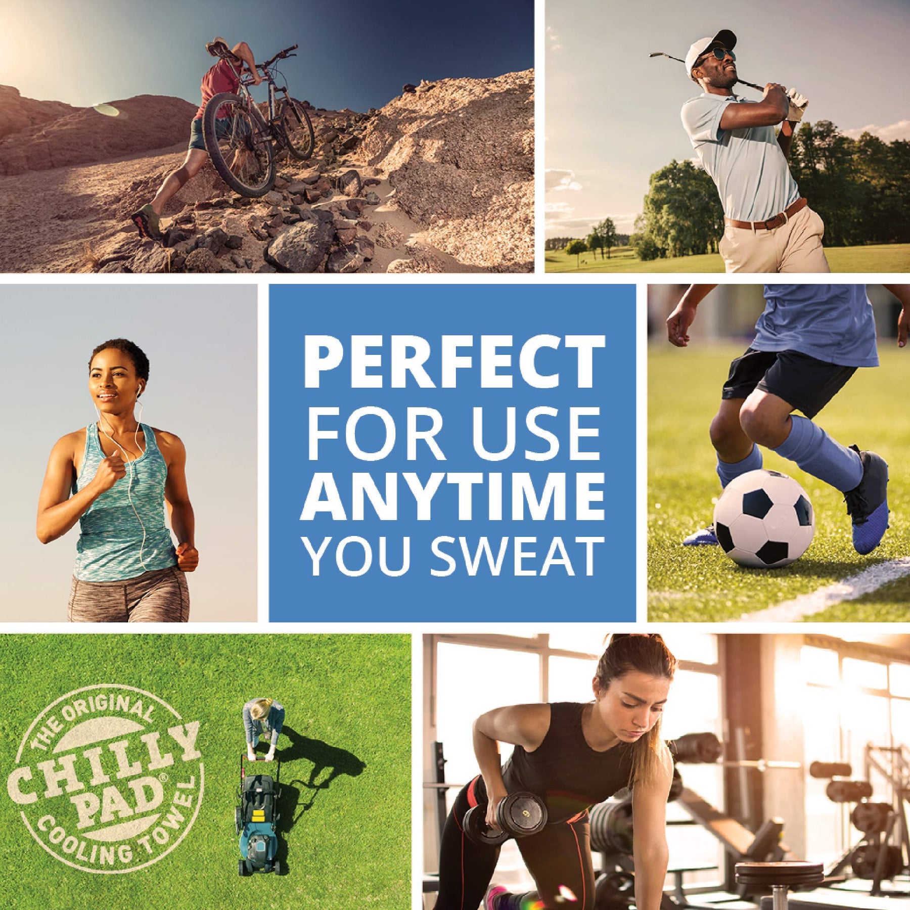 - ABSORBANT – the Chilly Pad materials can absorb up to 8 times its weight in water. Once wet, the cooling towel activates to quickly cool up to 30 degrees for hot weather relief